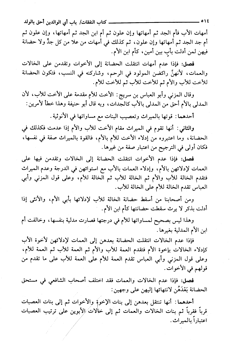 أَحَدُهُمَا: أَنَّهَا تَنْتَقِلُ بَعْدَهُنَّ إِلَى بَنَاتِ الْأُخْوَةِ وَالْأَخَوَاتِ ثُمَّ إِلَى بَنَاتِ الْعَصِبَاتِ قُرْبًا فَقُرْبًا ثُمَّ بَنَاتِ الْخَالَاتِ وَالْعَمَّاتِ ثُمَّ إِلَى خَالَاتِ الْأَبَوَيْنِ عَلَى تَرْتِيبِ الْعَصِبَاتِ اعْتِبَارًا بِالْمِيرَاثِ.