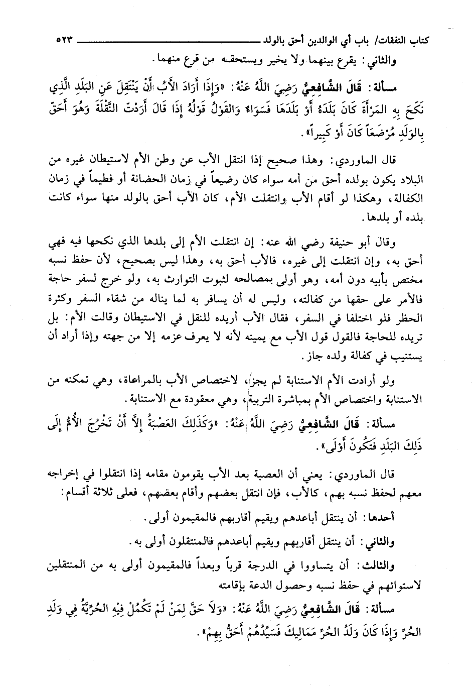 قال الشافعي رضي الله عنه: " وَكَذَلِكَ الْعَصَبَةُ إِلَّا أَنْ تَخْرُجَ الْأُمُّ إِلَى ذَلِكَ الْبَلَدِ فَتَكُونُ أَوْلَى ".