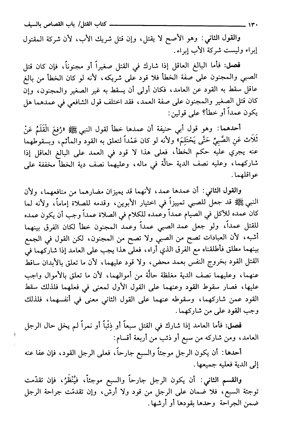 فَأَمَّا الْبَالِغُ الْعَاقِلُ إِذَا شَارَكَ فِي الْقَتْلِ صَغِيرًا أَوْ مَجْنُونًا، فَإِنْ كَانَ قَتْلُ الصَّبِيِّ وَالْمَجْنُونِ عَلَى صِفَةِ الْخَطَأِ فَلَا قَوَدَ عَلَى شَرِيكِهِ، لِأَنَّهُ لَوْ كَانَ الْخَطَأُ مِنْ بَالِغٍ عَاقِلٍ سَقَطَ بِهِ الْقَوَدُ عَنِ الْعَامِدِ، فَكَانَ أَوْلَى أَنْ يَسْقُطَ بِهِ غَيْرُ الصَّغِيرِ وَالْمَجْنُونِ، وَإِنْ كَانَ قَتْلُ الصَّغِيرِ وَالْمَجْنُونِ عَلَى صِفَةِ الْعَمْدِ، فَقَدِ اخْتَلَفَ قَوْلُ الشَّافِعِيِّ فِي عَمْدِهِمَا هَلْ يَكُونُ عَمْدًا أَوْ خَطَأً؟ عَلَى قَوْلَيْنِ: