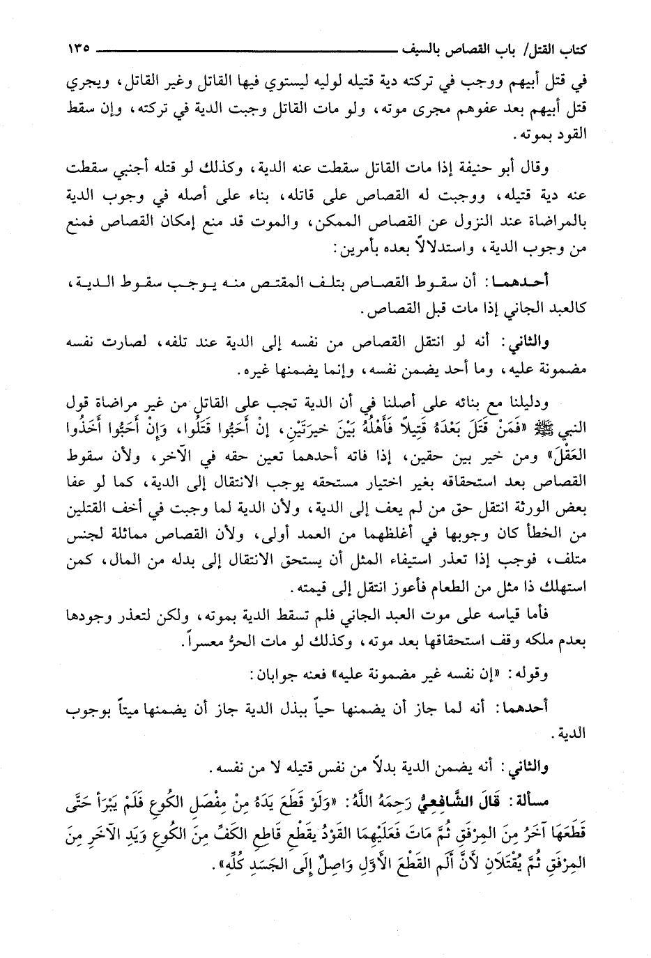 وَقَالَ أَبُو حَنِيفَةَ إِذَا مَاتَ الْقَاتِلُ سَقَطَتْ عَنْهُ الدِّيَةُ، وَكَذَلِكَ لَوْ قَتَلَهُ أَجْنَبِيٌّ سَقَطَتْ عَنْهُ دِيَةُ قَتِيلِهِ، وَوَجَبَت لَهُ الْقِصَاصُ عَلَى قَاتِلِهِ، بِنَاءً عَلَى أَصْلِهِ فِي وُجُوبِ الدِّيَةِ بِالْمُرَاضَاةِ عِنْدَ النُّزُولِ عَنِ الْقِصَاصِ الْمُمْكِنِ، وَالْمَوْتُ قَدْ مَنَعَ إِمْكَانَ الْقِصَاصِ فَمَنَعَ مِنْ وُجُوبِ الدِّيَةِ، وَاسْتِدْلَالًا بَعْدَهُ بِأَمْرَيْنِ:
