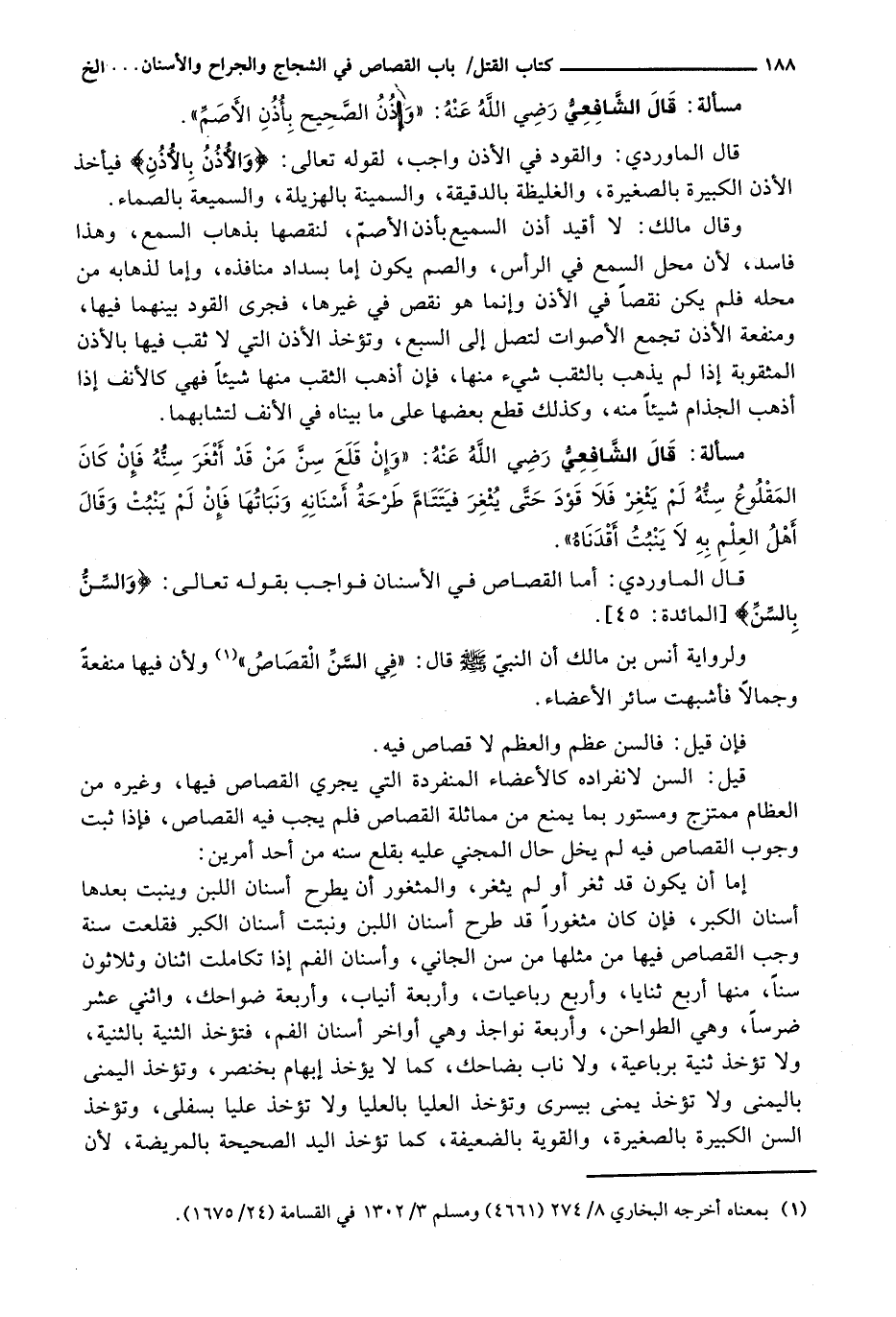 قَالَ الْمَاوَرْدِيُّ: أَمَّا الْقِصَاصُ فِي الْأَسْنَانِ فَوَاجِبٌ بِقَوْلِهِ تَعَالَى: {وَالسِّنَّ بِالسِّنِّ} [المائدة: 45] .
