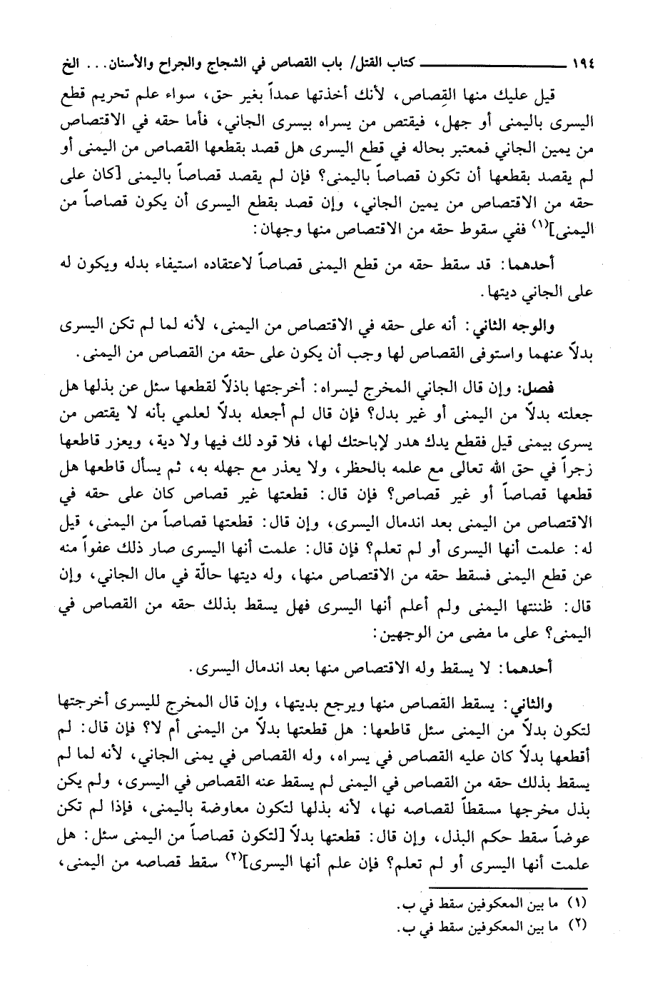 وَالْوَجْهُ الثَّانِي: أَنَّهُ عَلَى حَقِّهِ فِي الِاقْتِصَاصِ مِنَ اليُمْنَى، لِأَنَّهُ لَمَّا لَمْ تَكُنِ الْيُسْرَى بَدَلًا عَنْهُمَا وَاسْتَوْفَى الْقِصَاصَ لَهَا وَجَبَ أَنْ يَكُونَ عَلَى حَقِّهِ مِنَ القِصَاصِ مِنَ اليُمْنَى.