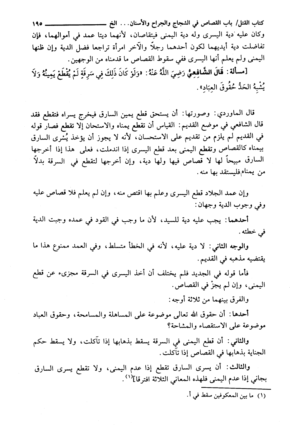 فَأَمَّا قَوْلُهُ فِي الْجَدِيدِ فَلَمْ يَخْتَلِفْ أَنَّ أَخْذَ الْيُسْرَى فِي السَّرِقَةِ مُجْزِئٌ عَنْ قَطْعِ الْيُمْنَى، وَإِنْ لَمْ يَجُزْ فِي الْقِصَاصِ.