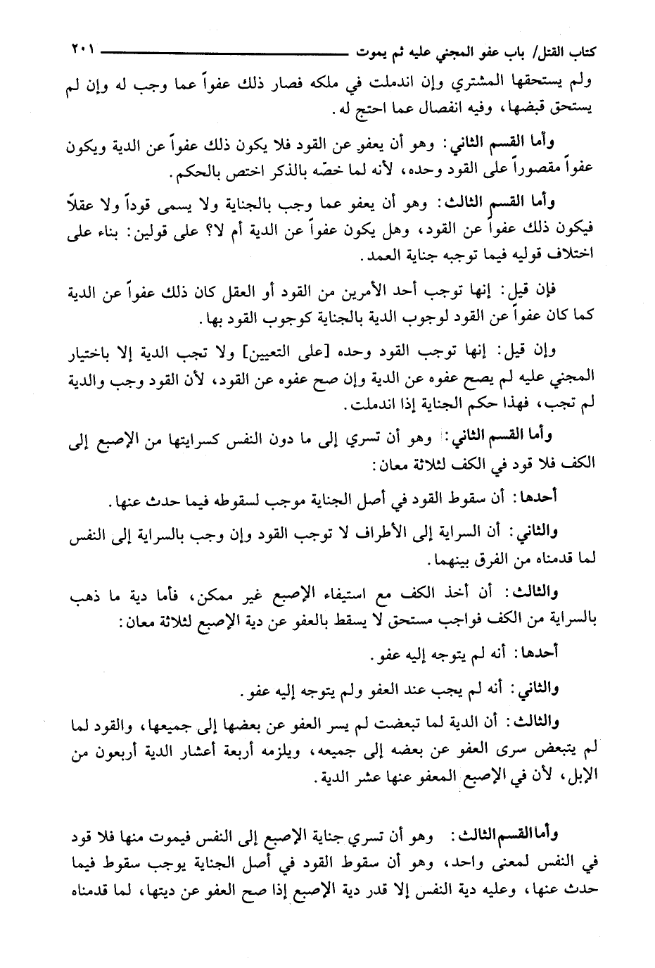 وَأَمَّا الْقِسْمُ الثَّانِي: وَهُوَ أَنْ يَعْفُوَ عَنِ الْقَوَدِ فَلَا يَكُونُ ذَلِكَ عَفْوًا عَنِ الدِّيَةِ وَيَكُونُ عَفْوًا مَقْصُورًا عَلَى الْقَوَدِ وَحْدَهُ، لِأَنَّهُ لَمَّا خَصَّهُ بِالذِّكْرِ اخْتُصَّ بِالْحُكْمِ.