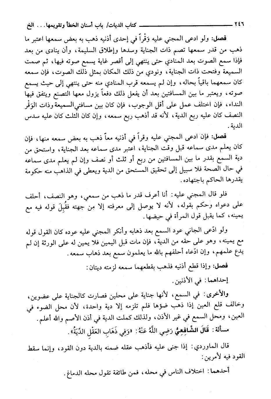 قال الشافعي رضي الله عنه: " وَفِي ذَهَابِ الْعَقْلِ الدِّيَةُ ".