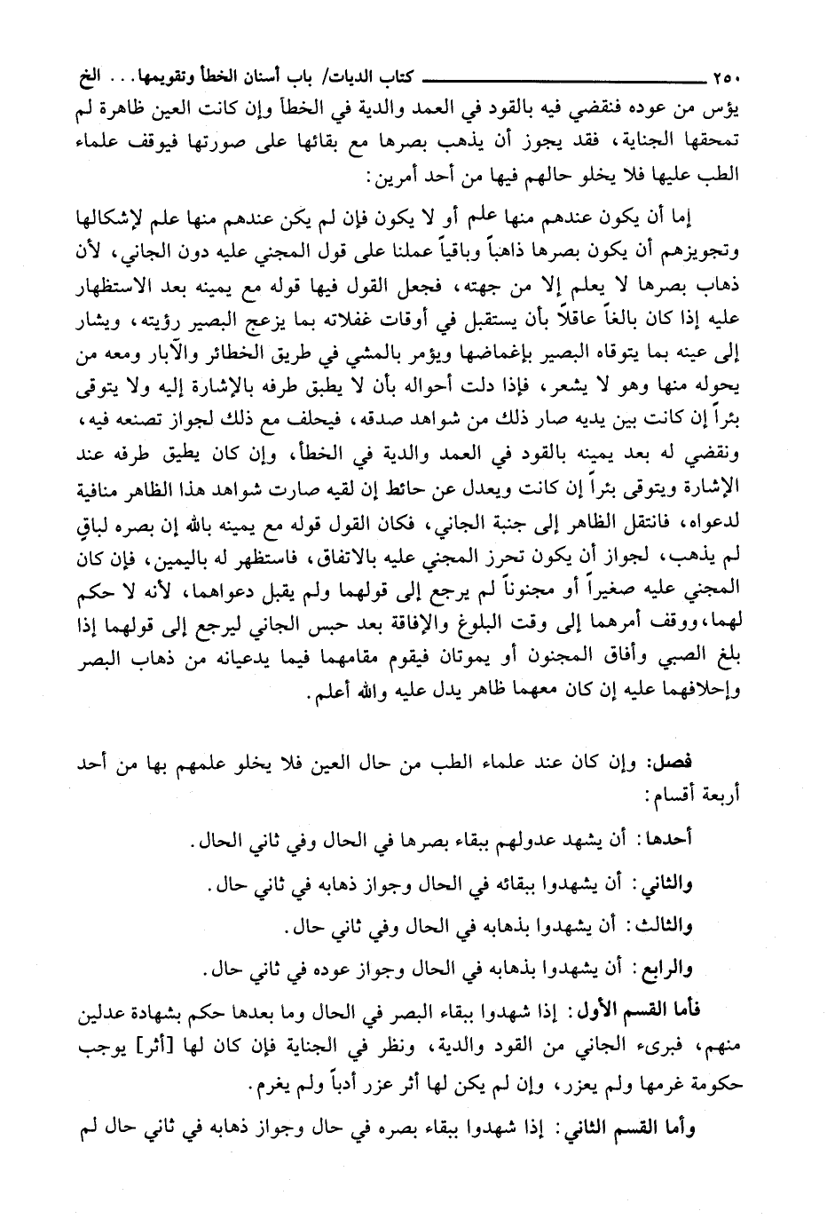 وَإِنْ كَانَ عِنْدَ عُلَمَاءِ الطِّبِّ مِنْ حَالِ الْعَيْنِ فَلَا يَخْلُو عِلْمُهُمْ بِهَا مِنْ أَحَدِ أَرْبَعَةِ أقسام:
