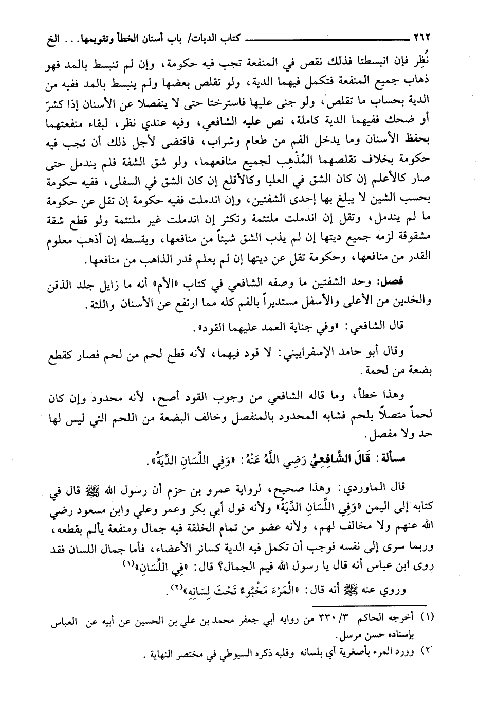 قال الشافعي رضي الله عنه: " وَفِي اللِّسَانِ الدِّيَةُ ".