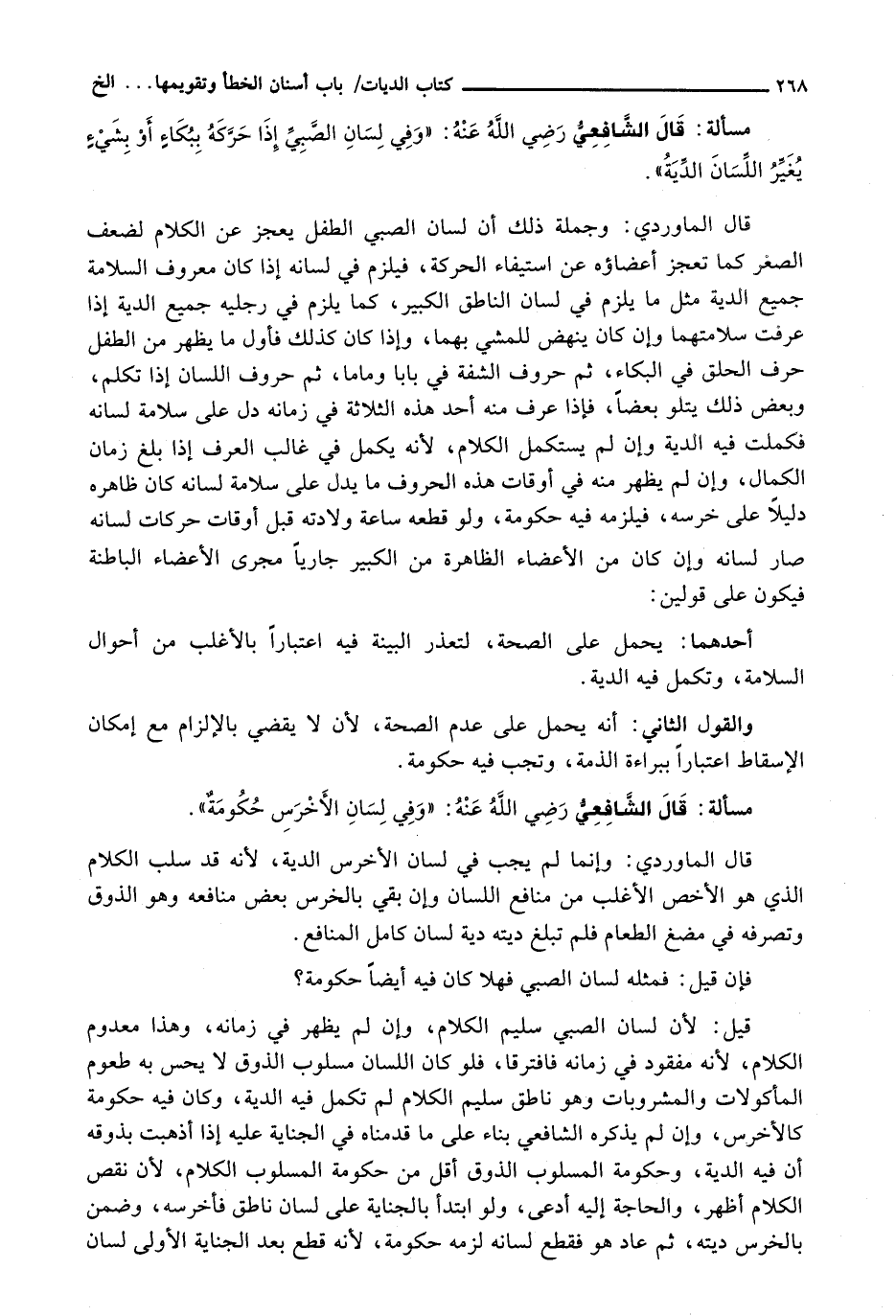 قال الشافعي رضي الله عنه: " وَفِي لِسَانِ الصَّبِيِّ إِذَا حَرَّكَهُ بِبُكَاءٍ أَوْ بِشَيْءٍ يُغَيِّرُ اللِّسَانَ الدِّيَةُ ".