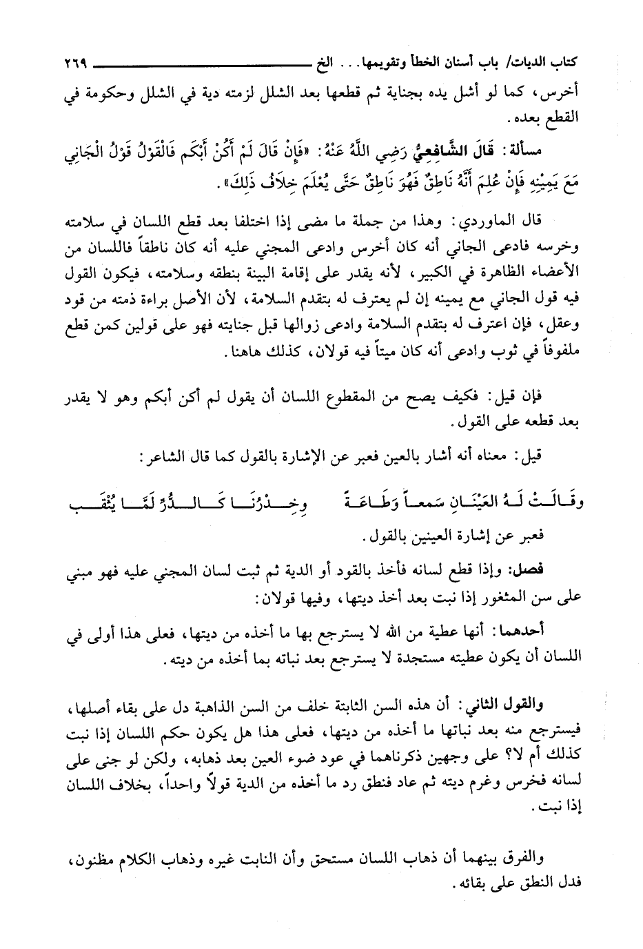 قال الشافعي رضي الله عنه: " فَإِنْ قَالَ لَمْ أَكُنْ أَبْكَمَ فَالْقَوْلُ قَوْلُ الْجَانِي مَعَ يَمِينِهِ فَإِنْ عُلِمَ أَنَّهُ نَاطِقٌ فَهُوَ نَاطِقٌ حَتَّى يُعْلَمَ خِلَافُ ذَلِكَ ".