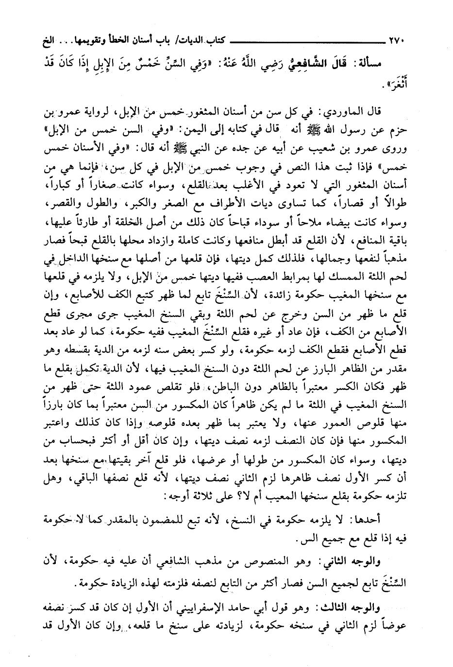 قال الشافعي رضي الله عنه: " وَفِي السِّنِّ خَمْسٌ مِنَ الْإِبِلِ إِذَا كَانَ قد أثغر ".