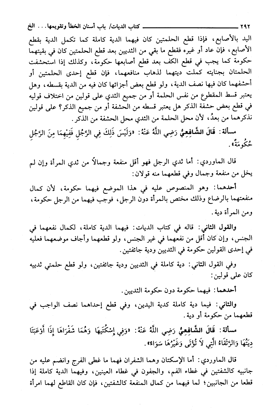 قال الشافعي رضي الله عنه: " وَلَيْسَ ذَلِكَ فِي الرَّجُلِ فَفِيهِمَا مِنَ الرَّجُلِ حُكُومَةٌ ".
