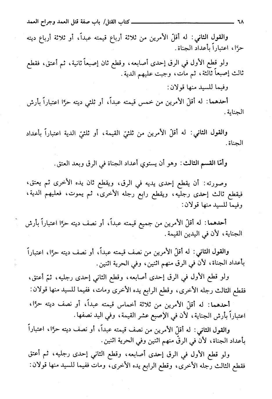 وَالْقَوْلُ الثَّانِي: لَهُ أَقَلُّ الْأَمْرَيْنِ مِنْ ثَلَاثَةِ أَرْبَاعِ قِيمَتِهِ عَبْدًا، أَوْ ثَلَاثَةِ أَرْبَاعِ دِيَتِهِ حُرًّا، اعْتِبَارًا بِأَعْدَادِ الْجُنَاةِ.