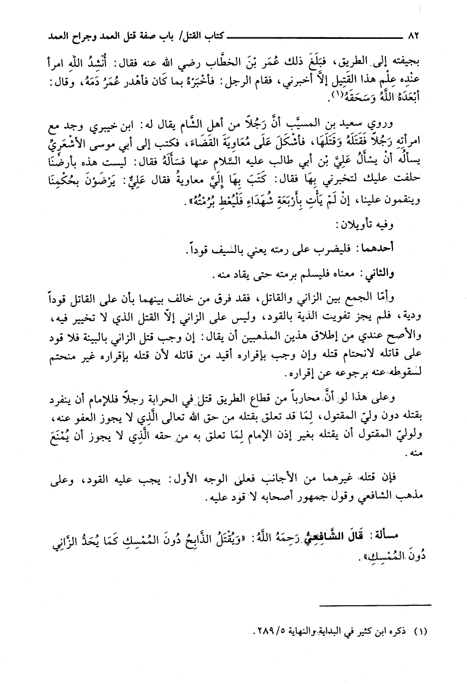 أَحَدُهُمَا: فَلْيَضْرِبْ عَلَى رُمَّتِهِ يَعْنِي بِالسَّيْفِ قَوَدًا.