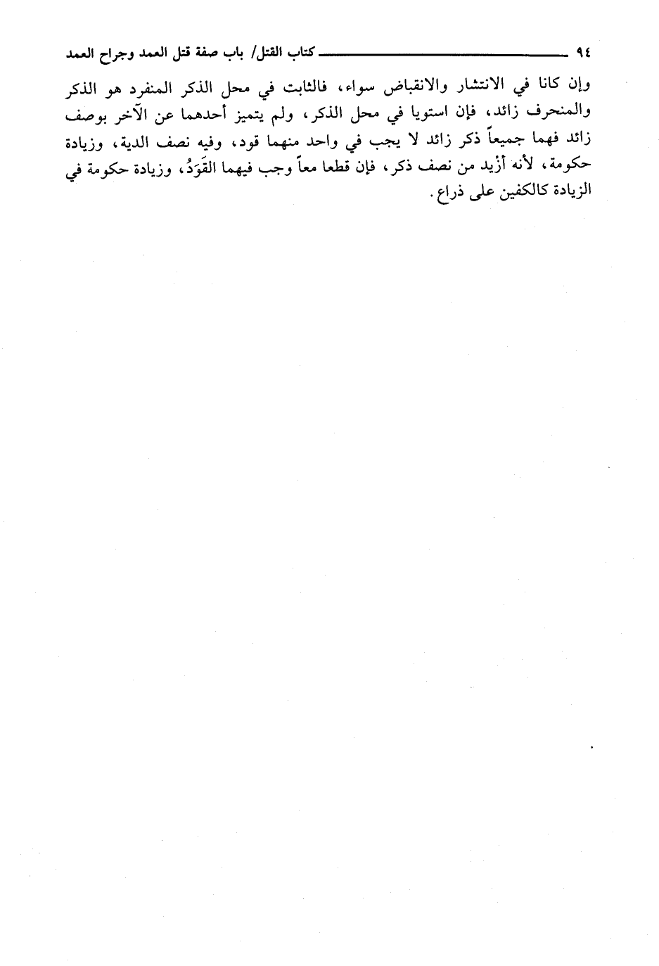 وَإِنْ كَانَا فِي الِانْتِشَارِ وَالِانْقِبَاضِ سَوَاءٌ، فَالثَّابِتُ فِي مَحَلِّ الذَّكَرِ الْمُنْفَرِدِ هُوَ الذَّكَرُ وَالْمُنْحَرِفُ زَائِدٌ، فَإِنِ اسْتَوَيَا فِي مَحَلِّ الذَّكَرِ، وَلَمْ يَتَمَيَّزْ أَحَدُهُمَا عَنِ الْآخَرِ بِوَصْفٍ زَائِدٍ فَهُمَا جَمِيعًا ذَكَرٌ زَائِدٌ لَا يَجِبُ فِي وَاحِدٍ مِنْهُمَا قَوَدٌ، وَفِيهِ نِصْفُ الدِّيَةِ، وَزِيَادَةُ حُكُومَةٍ، لِأَنَّهُ أَزْيَدُ مِنْ نِصْفِ ذَكَرٍ، فَإِنْ قُطِعَا مَعًا وَجَبَ فِيهِمَا الْقَوَدُ، وَزِيَادَةُ حُكُومَةٍ فِي الزِّيَادَةِ كَالْكَفَّيْنِ عَلَى ذِرَاعٍ.