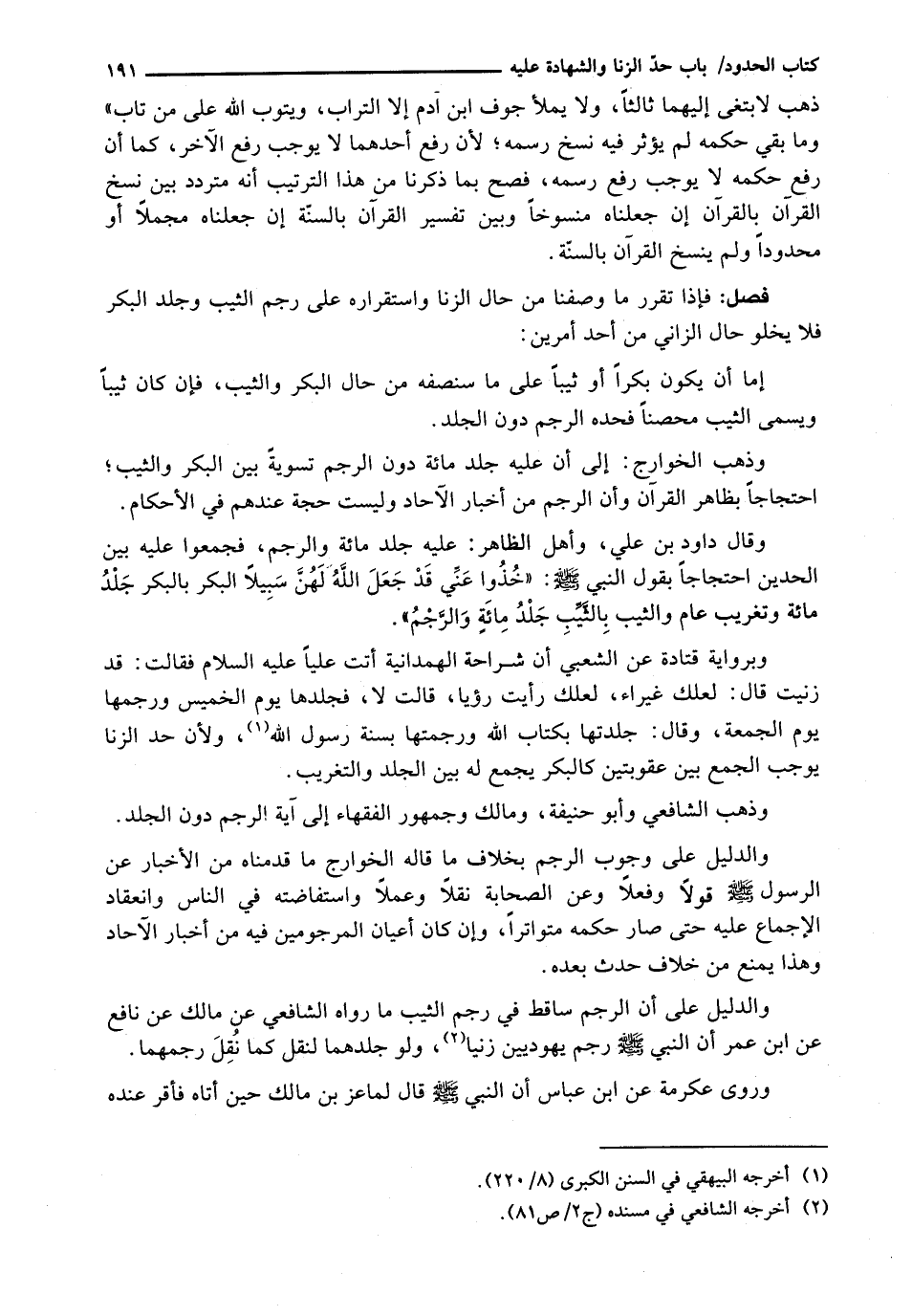 وَالدَّلِيلُ عَلَى وُجُوبِ الرَّجْمِ بِخِلَافِ مَا قَالَهُ الْخَوَارِجُ مَا قَدَّمْنَاهُ مِنَ الأخبار عن الرسول الله - صَلَّى اللَّهُ عَلَيْهِ وَسَلَّم َ - قَوْلًا وَفِعْلًا وَعَنِ الصَّحَابَةِ نَقْلًا وَعَمَلًا وَاسْتِفَاضَتُهُ فِي النَّاسِ وَانْعِقَادُ الْإِجْمَاعِ عَلَيْهِ حَتَّى صَارَ حُكْمُهُ مُتَوَاتِرًا، وَإِنْ كَانَ أَعْيَانُ الْمَرْجُومِينَ فِيهِ مِنْ أَخْبَارِ الْآحَادِ وَهَذَا يَمْنَعُ مِنْ خِلَافِ حدث بعده.