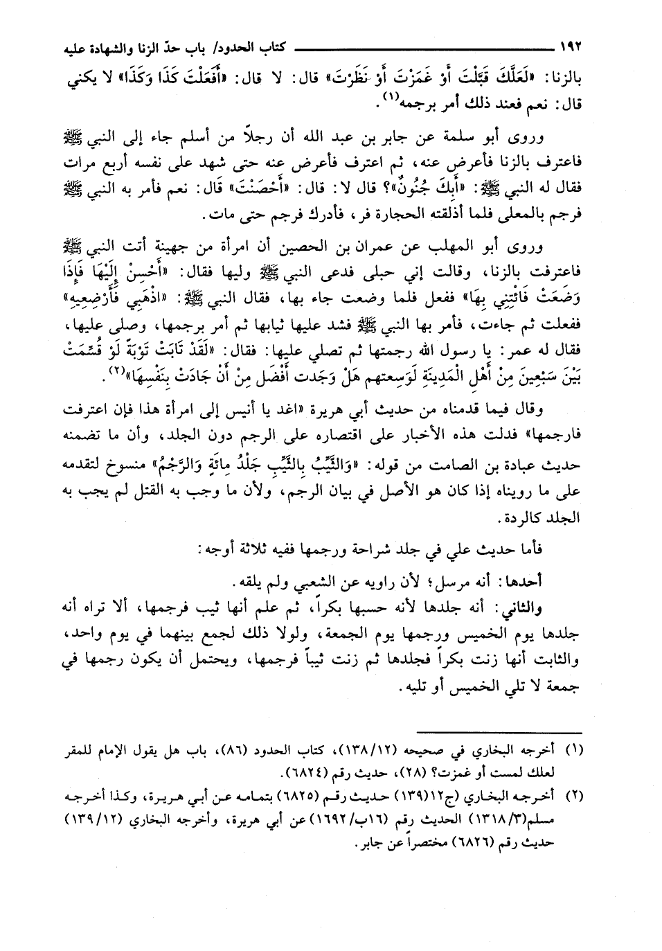 وَقَالَ فِيمَا قَدَّمْنَاهُ مِنْ حَدِيثِ أَبِي هريرة " اغْدُ يَا أُنَيْسُ إِلَى امْرَأَةِ هَذَا فَإِنِ اعْتَرَفَتْ فَارْجُمْهَا) فَدَلَّتْ هَذِهِ الْأَخْبَارُ عَلَى اقْتِصَارِهِ عَلَى الرَّجْمِ دُونَ الْجَلْدِ، وَأَنَّ مَا تَضَمَّنَهُ حَدِيثُ عُبَادَةَ بْنِ الصَّامِتِ مِنْ قَوْلِهِ: " وَالثَّيِّبُ بِالثَّيِّبِ جَلْدُ مِائَةٍ وَالرَّجْمُ) مَنْسُوخٌ لِتَقَدُّمِهِ عَلَى مَا رويناه إذا كَانَ هُوَ الْأَصْلُ فِي بَيَانِ الرَّجْمِ، وَلِأَنَّ مَا وَجَبَ بِهِ الْقَتْلُ لَمْ يَجِبْ بِهِ الْجَلْدُ كَالرِّدَّةِ.