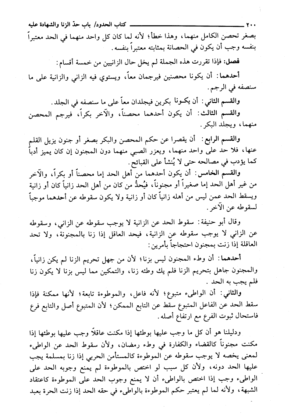 وَالْقِسْمُ الْخَامِسُ: أَنْ يَكُونَ أَحَدُهُمَا مِنْ أَهْلِ الْحَدِّ إِمَّا مُحْصَنًا أَوْ بِكْرًا، وَالْآخَرُ مِنْ غَيْرِ أَهْلِ الْحَدِّ إِمَّا صَغِيرًا أَوْ مَجْنُونًا، فَيُحَدُّ مَنْ كَانَ مِنْ أَهْلِ الْحَدِّ زَانِيًا كَانَ أَوْ زَانِيَةً وَيَسْقُطُ الْحَدُّ عَمَّنْ لَيْسَ مَنْ أَهِلِهِ زَانِيًا كَانَ أَوْ زَانِيَةً وَلَا يَكُونُ سُقُوطُهُ عَنْ أَحَدِهِمَا مُوجِبًا لِسُقُوطِهِ عَنِ الْآخَرِ.