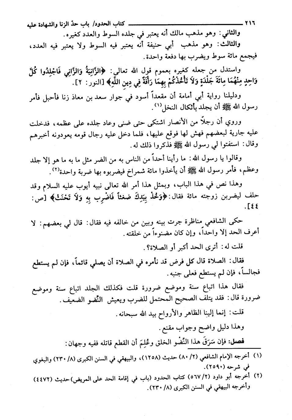 وَدَلِيلُنَا رِوَايَةُ أَبِي أُمَامَةَ أَنَّ مُقْعَدًا أَسْوَدَ فِي جوار سعد بن معاذ زنا فأحبل فَأَمَرَ رَسُولُ اللَّهِ - صَلَّى اللَّهُ عَلَيْهِ وَسَلَّم َ - أَنْ يُجْلَدَ بِإِثْكَالِ النَّخْلِ.