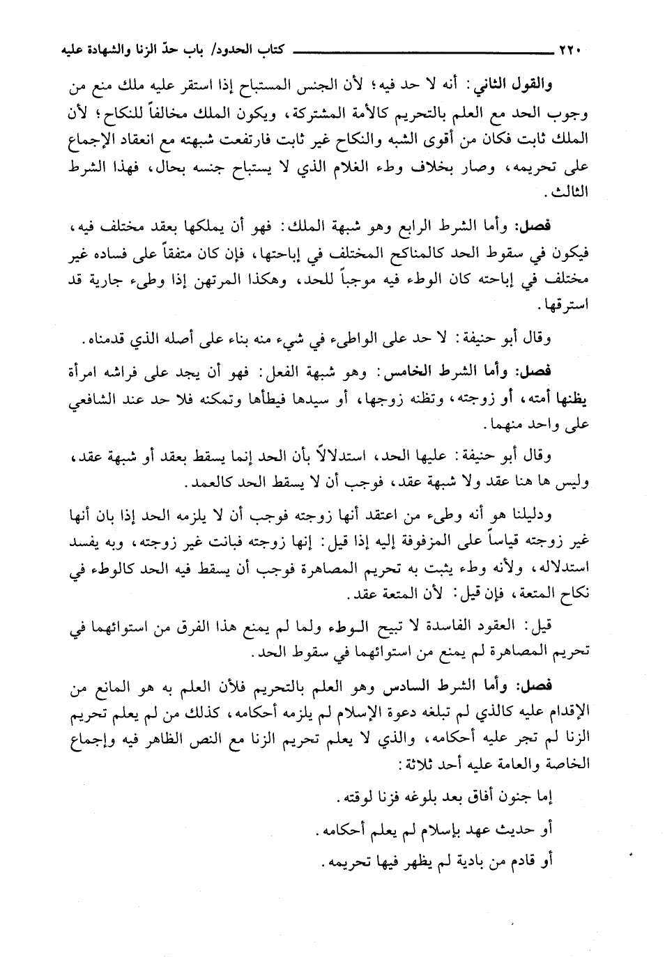 وَأَمَّا الشَّرْطُ السَّادِسُ وَهُوَ الْعِلْمُ بِالتَّحْرِيمِ فَلِأَنَّ الْعِلْمَ بِهِ هُوَ الْمَانِعُ مِنَ الْإِقْدَامِ عَلَيْهِ كَالَّذِي لَمْ تبلغه دعوة الإسلام لم يلزمه أَحْكَامُهُ، كَذَلِكَ مَنْ لَمْ يَعْلَمْ تَحْرِيمَ الزِّنَا لَمْ تَجْرِ عَلَيْهِ أَحْكَامُهُ، وَالَّذِي لَا يَعْلَمُ تَحْرِيمَ الزِّنَا مَعَ النَّصِّ الظَّاهِرِ فِيهِ وَإِجْمَاعُ الخاصة والعامة عليه أحد ثلاثة: