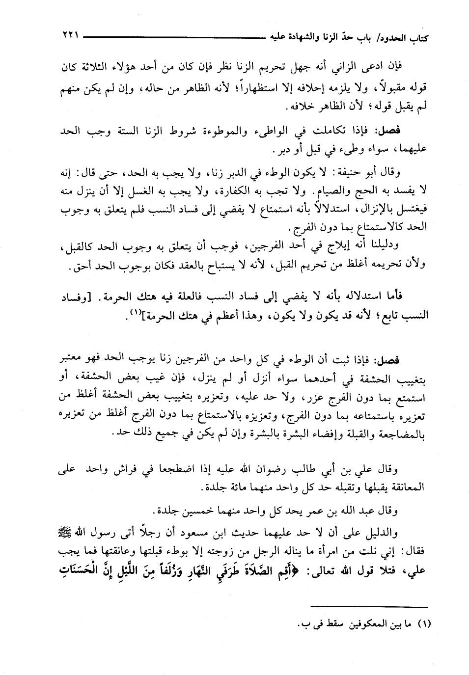 فَإِذَا تَكَامَلَتْ فِي الْوَاطِئِ وَالْمَوْطُوءَةِ شُرُوطُ الزِّنَا السِّتَّةُ وَجَبَ الْحَدُّ عَلَيْهِمَا، سَوَاءٌ وَطِئَ فِي قُبُلٍ أَوْ دُبُرٍ.