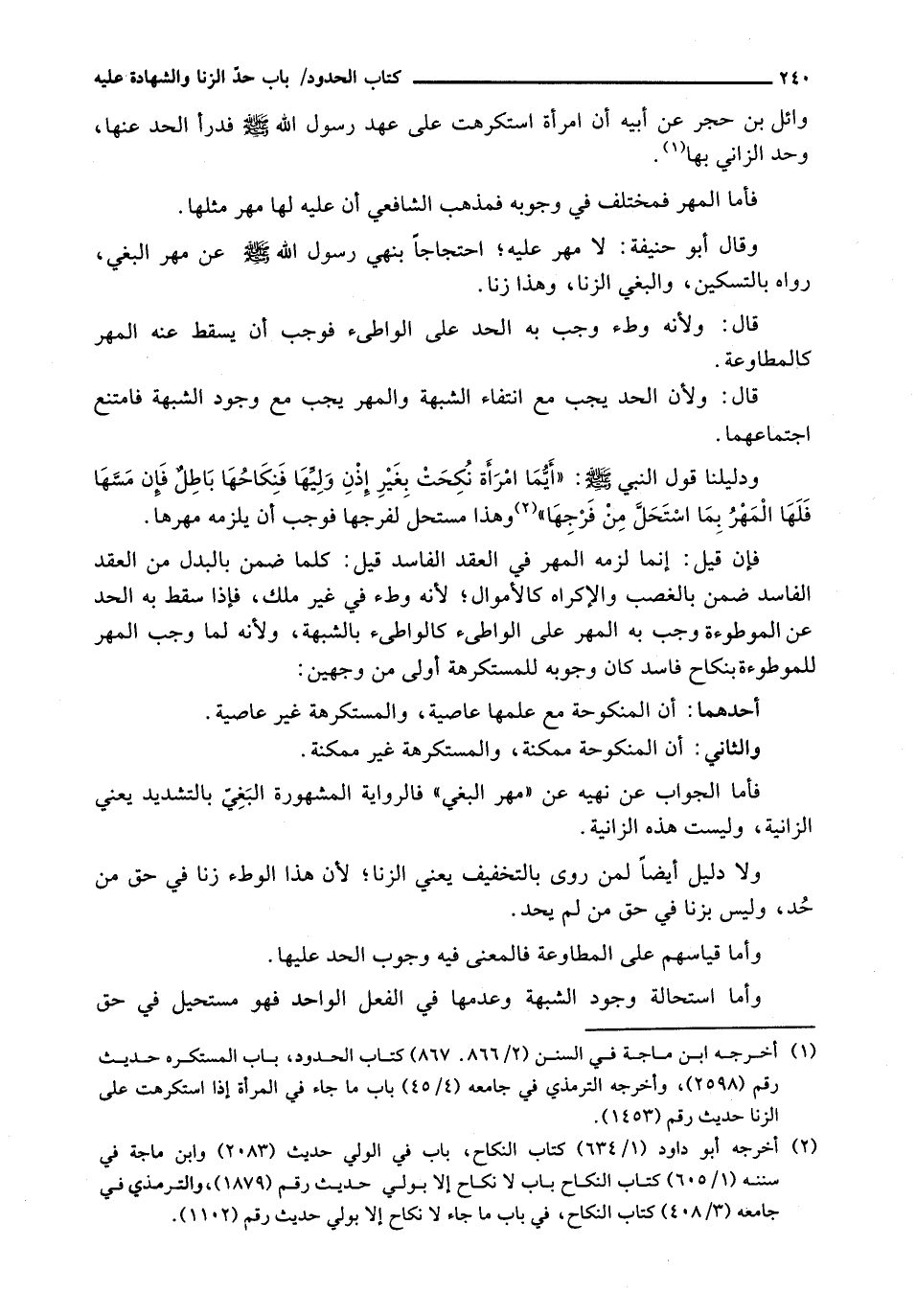 وَائِلِ بْنِ حُجْرٍ عَنْ أَبِيهِ أَنَّ امْرَأَةً اسْتُكْرِهَتْ عَلَى عَهْدِ رَسُولِ اللَّهِ - صَلَّى اللَّهُ عَلَيْهِ وَسَلَّم َ - فَدَرَأَ الْحَدَّ عَنْهَا، وَحَدَّ الزَّانِي بِهَا.