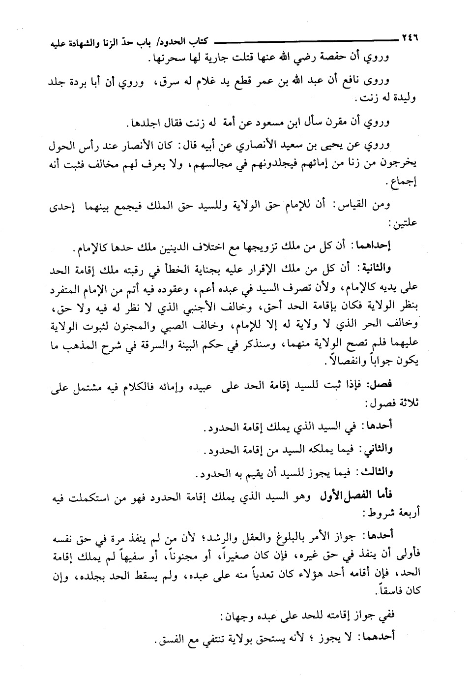 فَإِذَا ثَبَتَ لِلسَّيِّدِ إِقَامَةُ الْحَدِّ على عبيده وإمائه فَالْكَلَامُ فِيهِ مُشْتَمِلٌ عَلَى ثَلَاثَةِ فُصُولٍ: