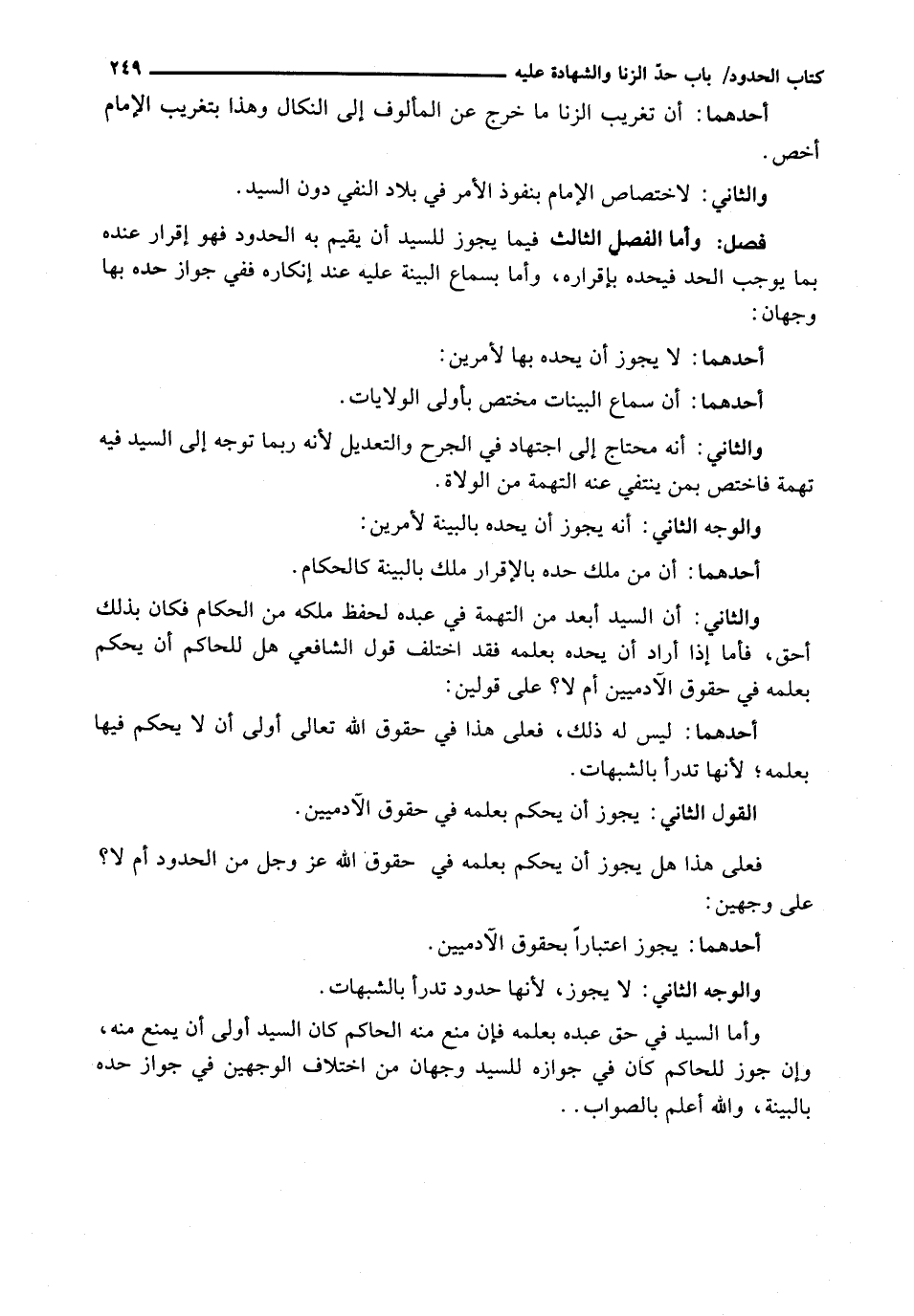 والثاني: أن السيد أبعد من التهمة في عبده لحفظ ملكه من الحكام فَكَانَ بِذَلِكَ أَحَقَّ، فَأَمَّا إِذَا أَرَادَ أَنْ يَحُدَّهُ بِعِلْمِهِ فَقَدِ اخْتَلَفَ قَوْلُ الشَّافِعِيِّ هَلْ لِلْحَاكِمِ أَنْ يَحْكُمَ بِعِلْمِهِ فِي حُقُوقِ الْآدَمِيِّينَ أَمْ لَا؟ عَلَى قَوْلَيْنِ: