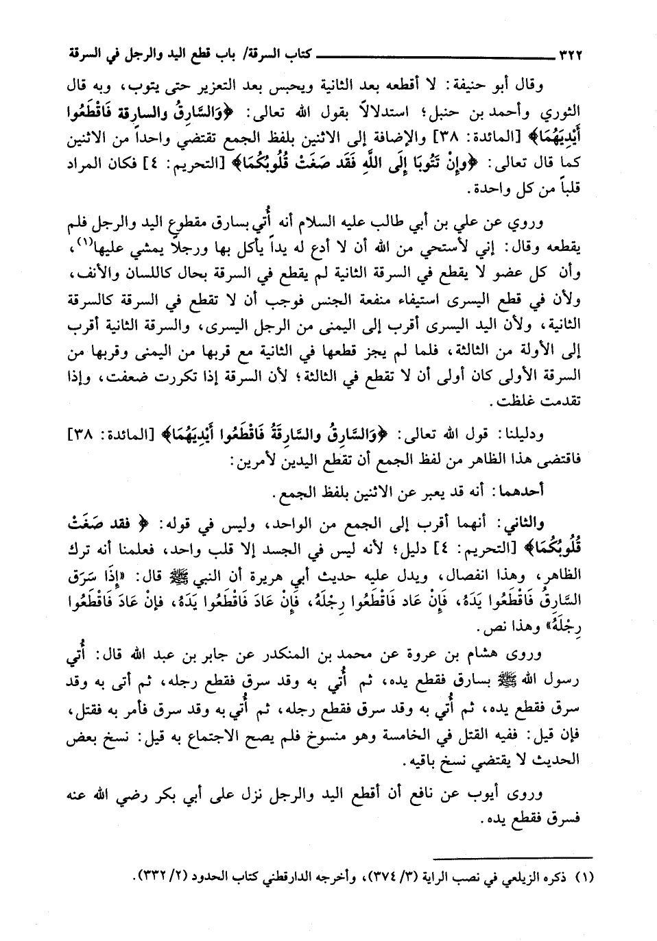 وَالثَّانِي: أَنَّهُمَا أَقْرَبُ إِلَى الْجَمْعِ مِنَ الْوَاحِدِ، وَلَيْسَ فِي قَوْلِهِ: {فَقَدْ صَغَتْ قُلُوبُكُمَا} [التحريم: 4] دَلِيلٌ؛ لِأَنَّهُ لَيْسَ فِي الْجَسَدِ إِلَّا قَلْبٌ وَاحِدٌ، فَعَلِمْنَا أَنَّهُ تَرَكَ الظَّاهِرَ، وَهَذَا انْفِصَالٌ، ويدل عليه حَدِيثُ أَبِي هُرَيْرَةَ أَنَّ النَّبِيَّ - صَلَّى اللَّهُ عَلَيْهِ وَسَلَّم َ - قَالَ: " إِذَا سَرَقَ السَّارِقُ فَاقْطَعُوا يَدَهُ، فَإِنْ عَادَ فَاقْطَعُوا رِجْلَهُ، فَإِنْ عَادَ فَاقْطَعُوا يَدَهُ، فَإِنْ عَادَ فَاقْطَعُوا رِجْلَهُ) وَهَذَا نَصٌّ.