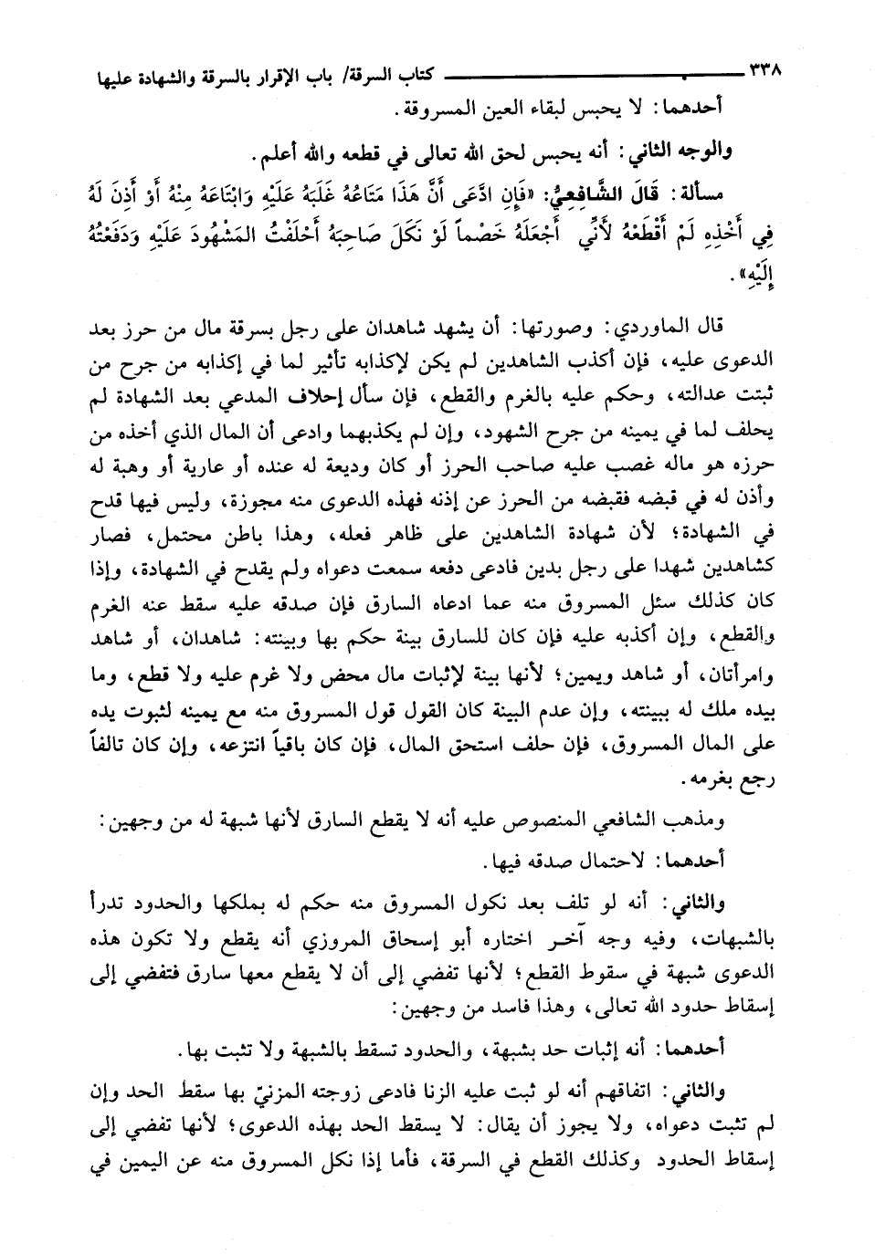 والثاني: اتفاقهم أنه لو ثبت عليه الزنا فادعى زوجته الْمَزْنِيِّ بِهَا سَقَطَ الْحَدُّ وَإِنْ لَمْ تَثْبُتْ دَعْوَاهُ، وَلَا يَجُوزُ أَنْ يُقَالَ: لَا يَسْقُطُ الْحَدُّ بِهَذِهِ الدَّعْوَى؛ لِأَنَّهَا تُفْضِي إِلَى إِسْقَاطِ الحدود وكذلك الْقَطْعُ فِي السَّرِقَةِ، فَأَمَّا إِذَا نَكَلَ الْمَسْرُوقُ مِنْهُ عَنِ الْيَمِينِ فِي