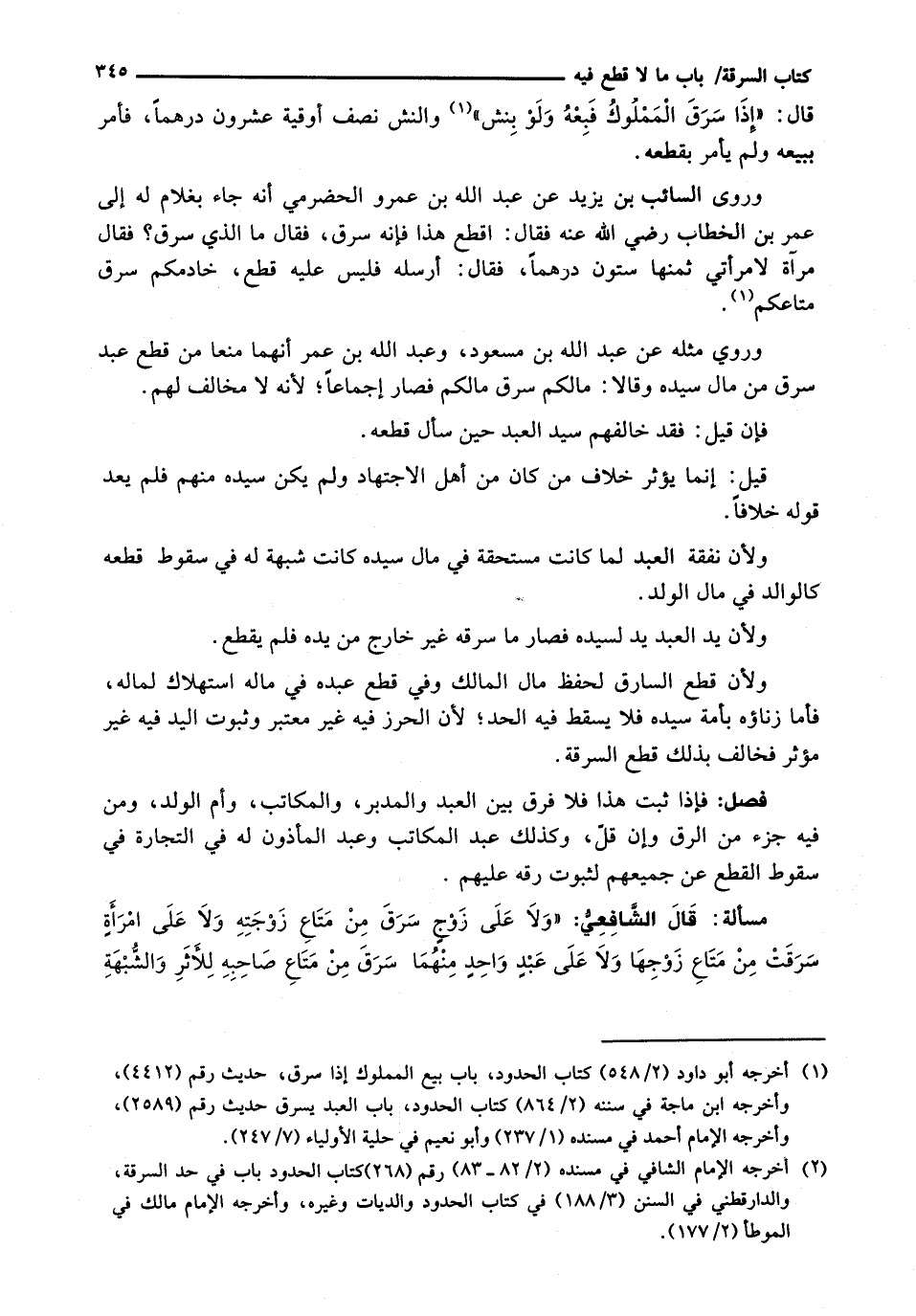 قال الشافعي: " ولا عَلَى زَوْجٍ سَرَقَ مِنْ مَتَاعِ زَوْجَتِهِ وَلَا عَلَى امْرَأَةٍ سَرَقَتْ مِنْ مَتَاعِ زَوْجِهَا وَلَا على عبد واحد منهما سرق من متاع صاحبه للأثر والشبهة