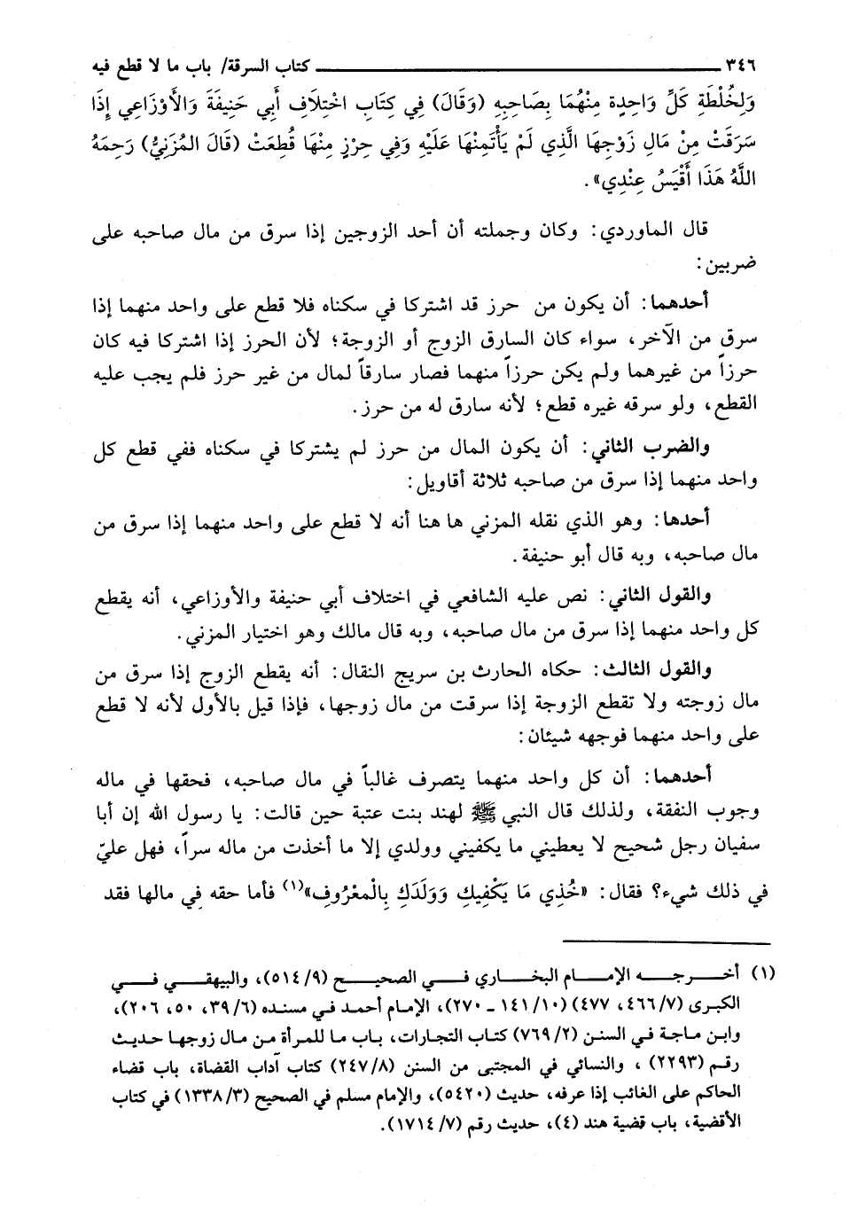 قال الماوردي: وكان وَجُمْلَتُهُ أَنَّ أَحَدَ الزَّوْجَيْنِ إِذَا سَرَقَ مِنْ مَالِ صَاحِبِهِ عَلَى ضَرْبَيْنِ: