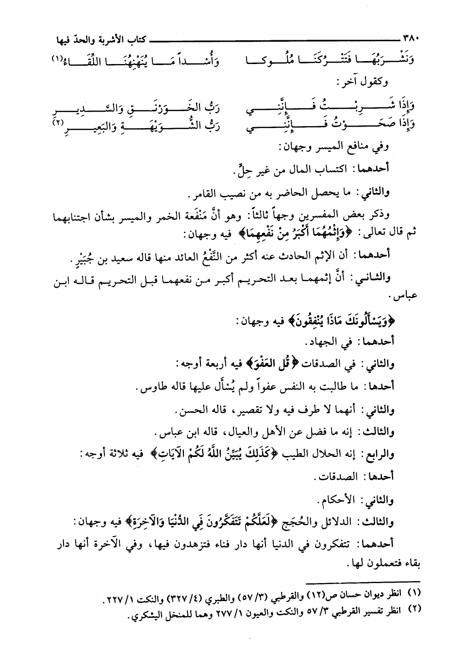وَالثَّانِي: أَنَّ إِثْمَهُمَا بَعْدَ التَّحْرِيمِ أَكْبَرُ مِنْ نَفْعِهِمَا قَبْلَ التَّحْرِيمِ قاله ابن عباس. {ويسألونك ماذا ينفقون} فِيهِ وَجْهَانِ: