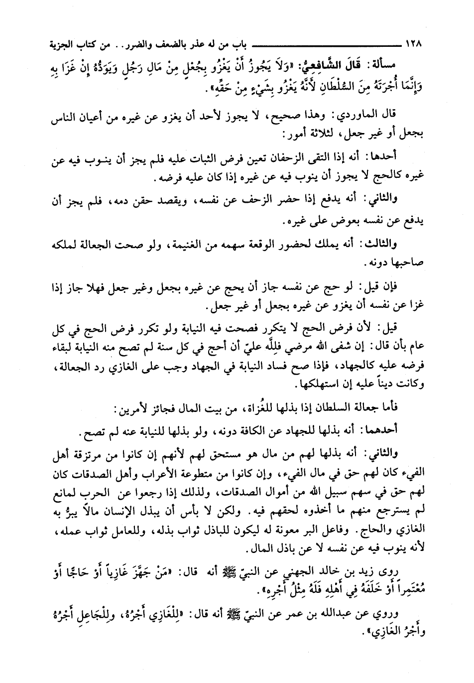 وَالثَّانِي: أَنَّهُ بَذَلَهَا لَهُمْ مِنْ مَالٍ هُوَ مُسْتَحَقٌّ لَهُمْ لِأَنَّهُمْ إِنْ كَانُوا مِنْ مُرْتَزِقَةِ أَهْلِ الْفَيْءِ كَانَ لَهُمْ حَقٌّ فِي مَالِ الْفَيْءِ، وَإِنْ كَانُوا مِنْ مُتَطَوِّعَةِ الْأَعْرَابِ وَأَهْلِ الصَّدَقَاتِ كَانَ لَهُمْ حَقٌّ فِي سَهْمِ سَبِيلِ اللَّهِ مِنْ أَمْوَالِ الصَّدَقَاتِ، وَلِذَلِكَ إِذَا رَجَعُوا عَنِ الْحَرْبِ لِمَانِعٍ لَمْ يَسْتَرْجِعْ مِنْهُمْ مَا أَخَذُوهُ لِحَقِّهِمْ فِيهِ. وَلَكِنْ لَا بَأْسَ أَنْ يَبْذُلَ الْإِنْسَانُ مَالًا يَبَرُّ بِهِ الْغَازِي وَالْحَاجَّ. وَفَاعِلُ الْبِرِّ مَعُونَةً لَهُ لِيَكُونَ لِلْبَاذِلِ ثَوَابُ بَذْلِهِ، وَلِلْعَامِلِ ثَوَابُ عَمَلِهِ، لِأَنَّهُ يَنُوبُ فِيهِ عَنْ نَفْسِهِ لَا عَنْ بَاذِلِ الْمَالِ.