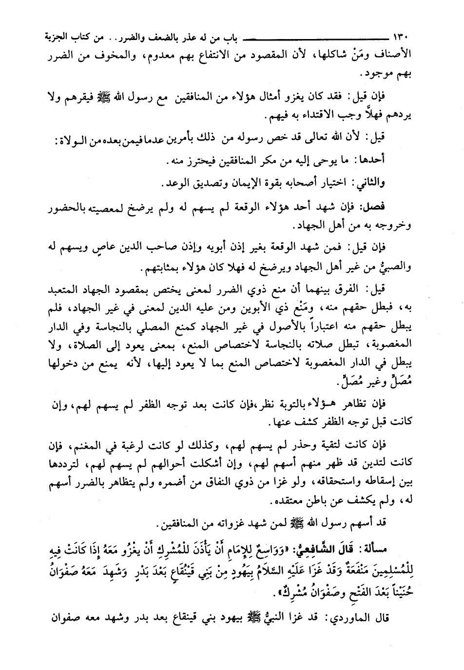 قَدْ أَسْهَمَ رسول الله - صَلَّى اللَّهُ عَلَيْهِ وَسَلَّم َ - لِمَنْ شَهِدَ غَزَوَاتِهِ مِنَ الْمُنَافِقِينَ.