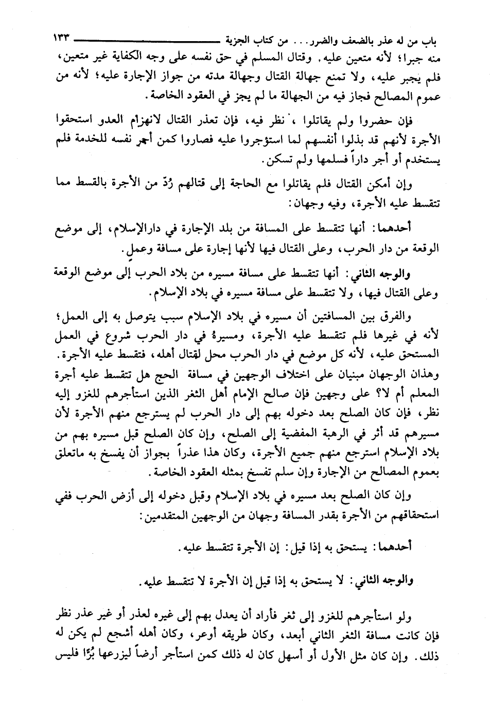 وَالْفَرْقُ بَيْنَ الْمَسَافَتَيْنِ أَنَّ مَسِيرَهُ فِي بِلَادِ الْإِسْلَامِ سَبَبٌ يَتَوَصَّلُ بِهِ إِلَى الْعَمَلِ؛ لِأَنَّهُ فِي غَيْرِهَا فَلَمْ تَتَقَسَّطْ عَلَيْهِ الْأُجْرَةُ، وَمَسِيرَهُ فِي دَارِ الْحَرْبِ شُرُوعٌ في العمل المستحق عليه، لأنه كُلُّ مَوْضِعٍ فِي دَارِ الْحَرْبِ مَحَلٌّ لِقِتَالِ أَهْلِهِ، فَتُقَسَّطُ عَلَيْهِ الْأُجْرَةُ وَهَذَانِ الْوَجْهَانِ مَبْنِيَّانِ عَلَى اخْتِلَافِ الْوَجْهَيْنِ فِي مَسَافَةِ الْحَجِّ هَلْ تَتَقَسَّطُ عَلَيْهِ أُجْرَةُ الْمُعَلِّمِ أَمْ لَا؟ عَلَى وَجْهَيْنِ فَإِنْ صَالَحَ الْإِمَامُ أَهْلَ الثَّغْرِ الَّذِينَ اسْتَأْجَرَهُمْ لِلْغَزْوِ إِلَيْهِ نُظِرَ، فَإِنْ كَانَ الصُّلْحُ بَعْدَ دُخُولِهِ بِهِمْ إِلَى دَارِ الْحَرْبِ لَمْ يَسْتَرْجِعْ مِنْهُمُ الْأُجْرَةَ لِأَنَّ مَسِيرَهُمْ قَدْ أَثَّرَ فِي الرَّهْبَةِ الْمُفْضِيَةِ إِلَى الصُّلْحِ، وَإِنْ كَانَ الصُّلْحُ قَبْلَ مَسِيرِهِ بِهِمْ مِنْ بِلَادِ الْإِسْلَامِ اسْتَرْجَعَ مِنْهُمْ جَمِيعَ الْأُجْرَةِ، وَكَانَ هَذَا عُذْرًا بِجَوَازِ أَنْ يَفْسَخَ بِهِ مَا تَعَلَّقَ بِعُمُومِ الْمَصَالِحِ مِنَ الْإِجَارَةِ وَإِنْ سُلِّمَ تُفْسَخُ بِمِثْلِهِ الْعُقُودُ الْخَاصَّةُ.
