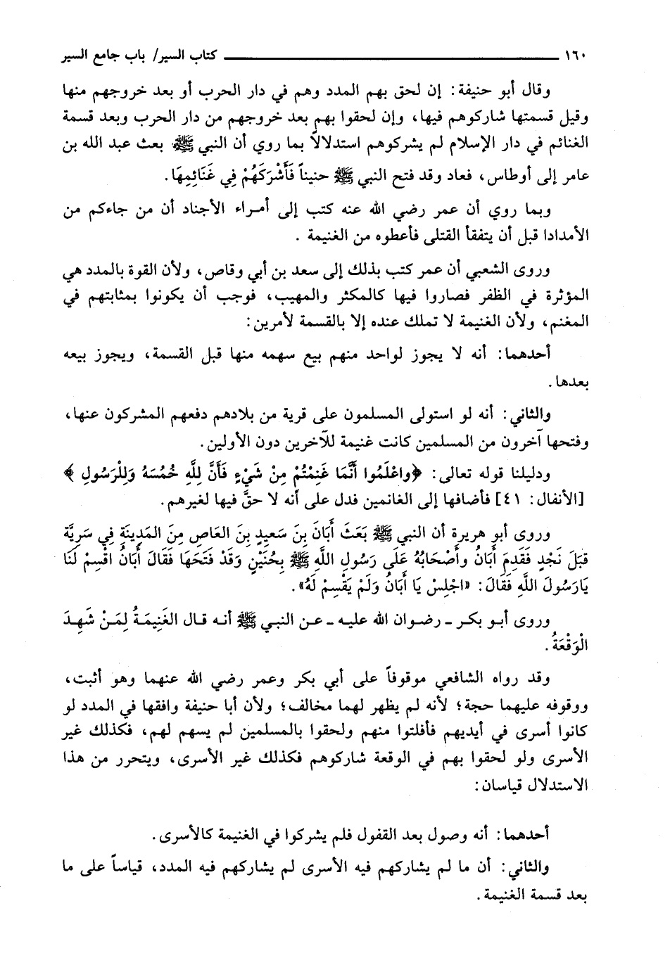 وروى أبو بكر - رِضْوَانُ اللَّهِ عَلَيْهِ - عَنِ النَّبِيِّ - صَلَّى اللَّهُ عَلَيْهِ وَسَلَّم َ - أَنَّهُ قَالَ الْغَنِيمَةُ لِمَنْ شَهِدَ الْوَقْعَةَ.