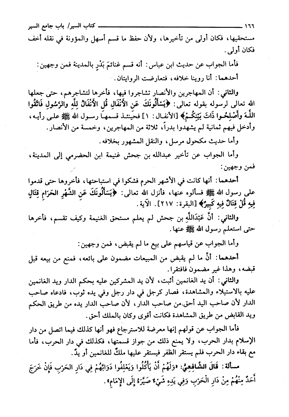 وَالثَّانِي: أَنَّ عَبْدَ اللَّهِ بْنَ جَحْشٍ لَمْ يَعْلَمْ مُسْتَحِقَّ الْغَنِيمَةِ وَكَيْفَ تُقَسَّمُ، فَأَخَّرَهَا حَتَّى اسْتَعْلَمَ رَسُولَ اللَّهِ - صَلَّى اللَّهُ عَلَيْهِ وَسَلَّم َ - عَنْهَا. وَأَمَّا الْجَوَابُ عَنْ قِيَاسِهِمْ عَلَى بَيْعِ مَا لَمْ يُقْبَضْ، فَمِنْ وَجْهَيْنِ:
