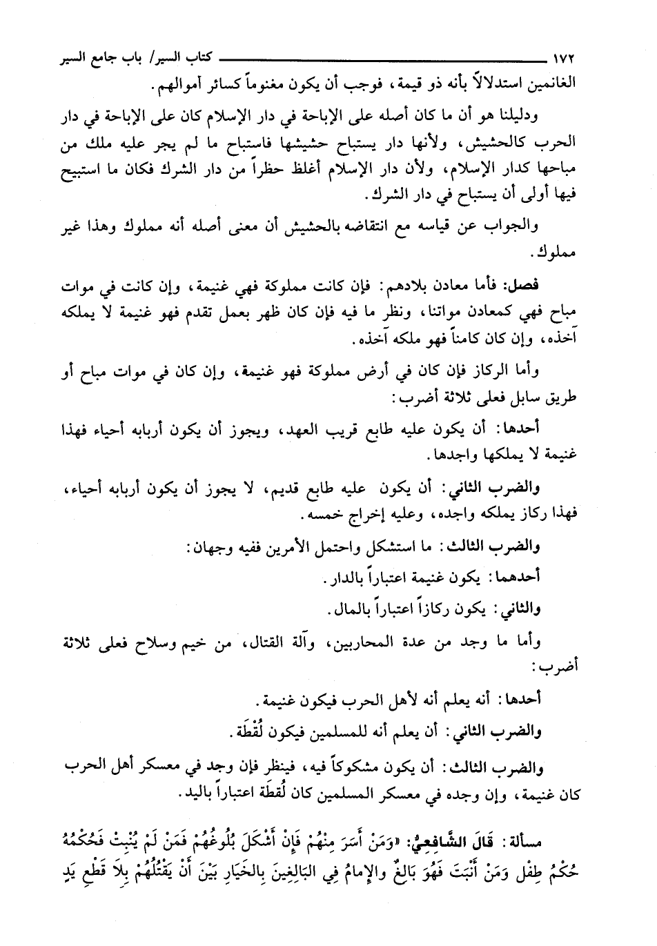 وَأَمَّا مَا وُجِدَ مِنْ عِدَّةِ الْمُحَارِبِينَ، وَآلَةِ الْقِتَالِ، مِنْ خِيَمٍ وَسِلَاحٍ فَعَلَى ثَلَاثَةٍ أَضْرُبٍ: