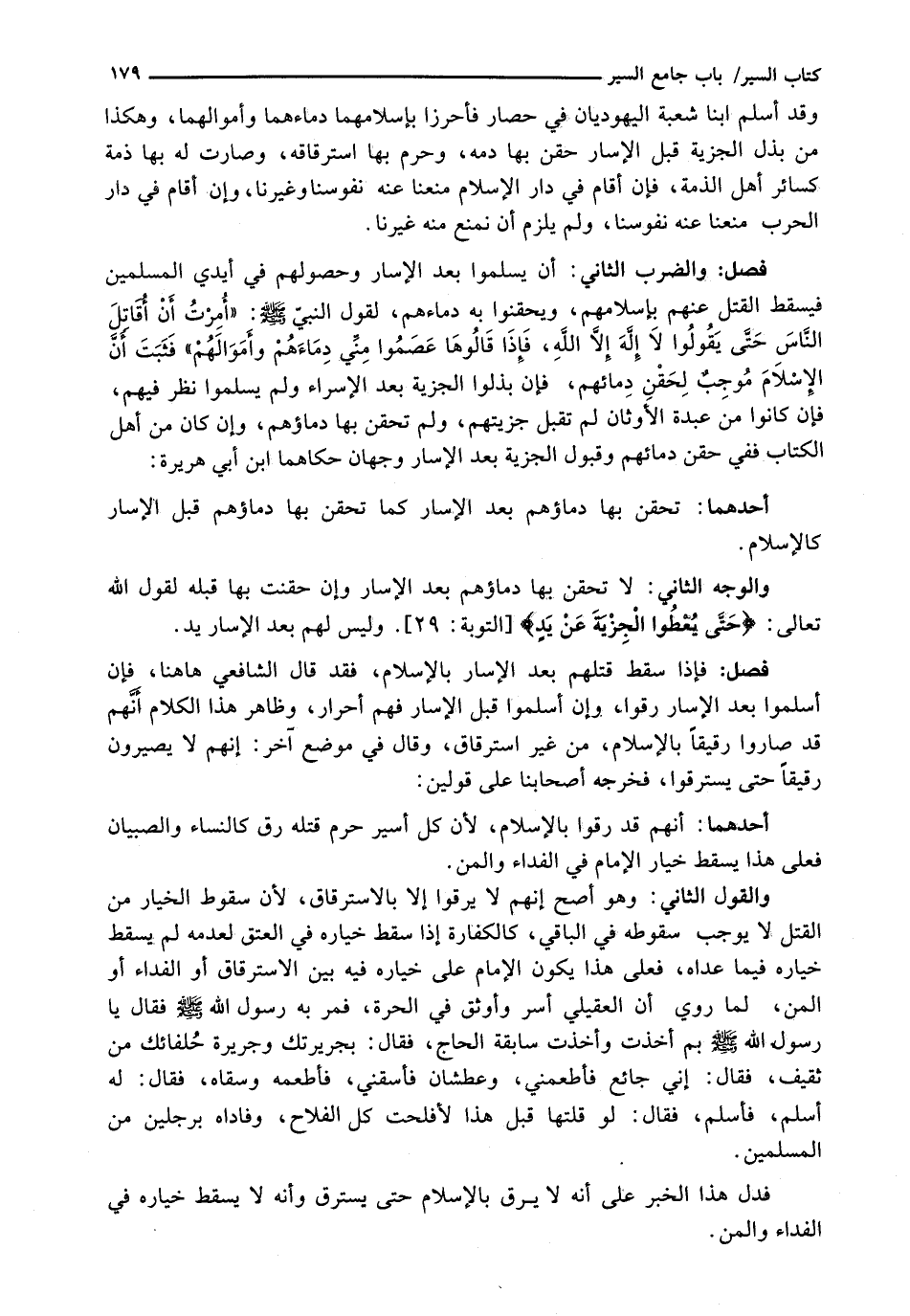 وَقَدْ أَسْلَمَ ابْنَا شُعْبَةَ الْيَهُودِيَّانِ فِي حِصَارٍ فَأَحْرَزَا بِإِسْلَامِهِمَا دِمَاءَهُمَا وَأَمْوَالَهُمَا، وَهَكَذَا مَنْ بَذَلَ الْجِزْيَةَ قَبْلَ الْإِسَارِ حُقِنَ بِهَا دَمُهُ، وَحَرُمَ بِهَا اسْتِرْقَاقُهُ، وَصَارَتْ لَهُ بِهَا ذِمَّةٌ كَسَائِرِ أَهْلِ الذِّمَّةِ، فَإِنْ أَقَامَ فِي دَارِ الْإِسْلَامِ مَنَعْنَا عَنْهُ نُفُوسَنَا وَغَيْرَنَا، وَإِنْ أَقَامَ فِي دَارِ الْحَرْبِ مَنَعْنَا عَنْهُ نُفُوسَنَا، وَلَمْ يَلْزَمْ أَنْ نَمْنَعَ مِنْهُ غَيْرَنَا.