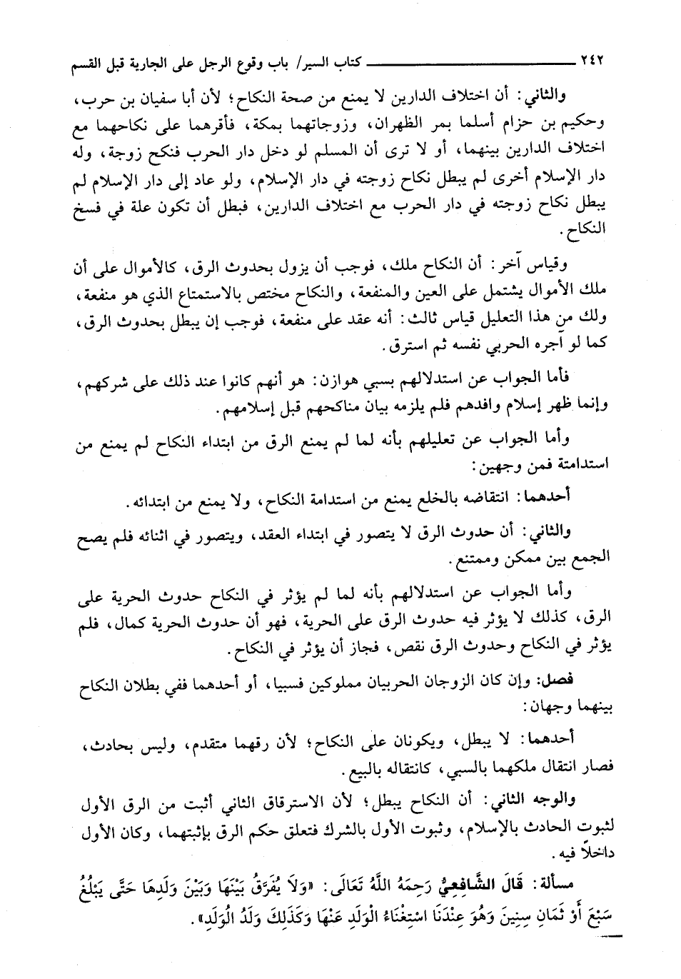 فَأَمَّا الْجَوَابُ عَنِ اسْتِدْلَالِهِمْ بِسَبْيِ هَوَازِنَ: هُوَ أَنَّهُمْ كَانُوا عِنْدَ ذَلِكَ عَلَى شِرْكِهِمْ، وَإِنَّمَا ظَهَرَ إِسْلَامُ وَافِدِهِمْ فَلَمْ يَلْزَمْهُ بَيَانُ مَنَاكِحِهِمْ قَبْلَ إِسْلَامِهِمْ.