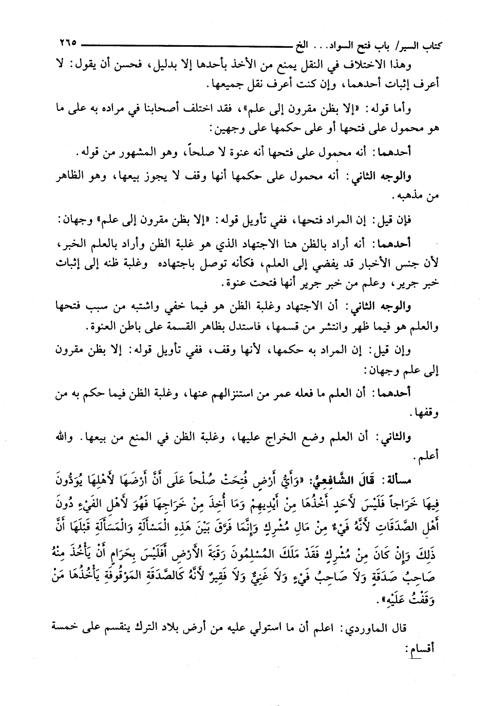 وَالثَّانِي: أَنَّ الْعِلْمَ وَضْعُ الْخَرَاجِ عَلَيْهَا، وَغَلَبَةَ الظَّنِّ فِي الْمَنْعِ مِنْ بَيْعِهَا. وَاللَّهُ أعلم.