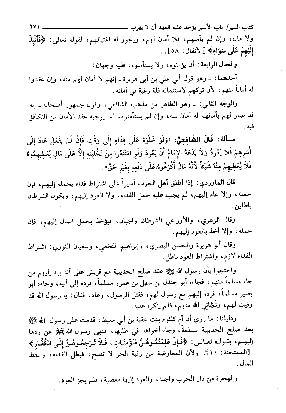 وَاحْتَجُّوا بِأَنَّ رَسُولَ اللَّهِ - صَلَّى اللَّهُ عَلَيْهِ وَسَلَّم َ - عَقَدَ صُلْحَ الْحُدَيْبِيَةِ مَعَ قُرَيْشٍ عَلَى أَنَّهُ يَرُدُّ إِلَيْهِمْ مَنْ جَاءَ مُسْلِمًا مِنْهُمْ، فَجَاءَهُ أَبُو جَنْدَلِ بْنُ سَهْلِ بْنِ عَمْرٍو مُسْلِمًا، فَرَدَّهُ إِلَى أَبِيهِ، وَجَاءَهُ أَبُو بَصِيرٍ مُسْلِمًا فَرَدَّهُ إِلَيْهِمْ مَعَ رَسُولٍ لَهُمْ، فَقَتَلَ الرَّسُولَ، وَعَادَ، فَقَالَ: يَا رَسُولَ اللَّهِ قَدْ وَفَّيْتُ لَهُمْ، وَنَجَّانِي اللَّهُ مِنْهُمْ، فَلَمْ يُنْكِرْهُ عَلَيْهِ.