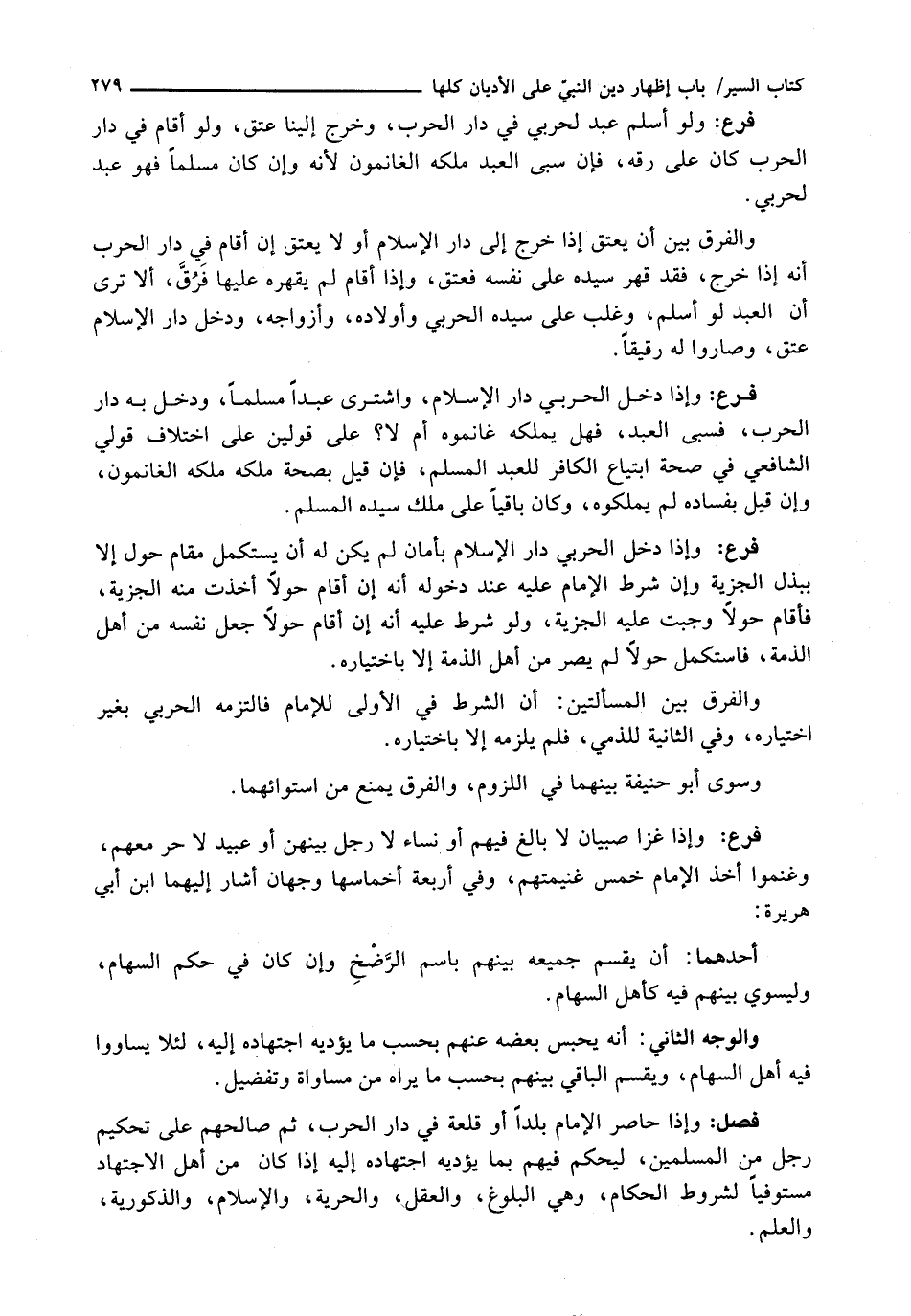 : وَلَوْ أَسْلَمَ عَبْدٌ لِحَرْبِيٍّ فِي دَارِ الْحَرْبِ، وَخَرَجَ إِلَيْنَا عُتِقَ، وَلَوْ أَقَامَ فِي دَارِ الْحَرْبِ كَانَ عَلَى رِقِّهِ، فَإِنْ سُبِيَ الْعَبْدُ مَلَكَهُ الْغَانِمُونَ لِأَنَّهُ وَإِنْ كَانَ مُسْلِمًا فَهُوَ عَبْدٌ لِحَرْبِيٍّ