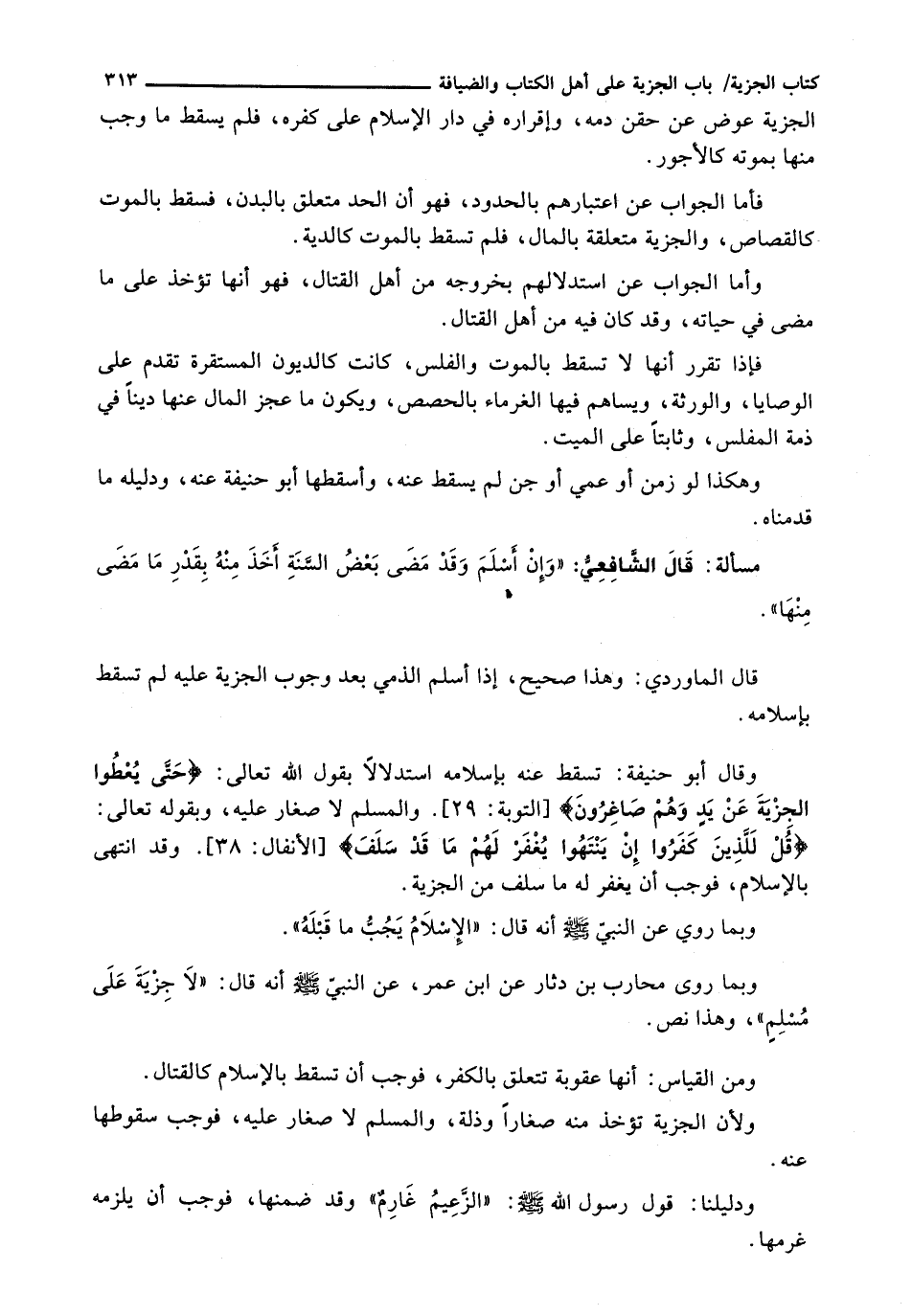 قَالَ الْمَاوَرْدِيُّ: وَهَذَا صَحِيحٌ، إِذَا أَسْلَمَ الذِّمِّيُّ بَعْدَ وُجُوبِ الْجِزْيَةِ عَلَيْهِ لَمْ تَسْقُطْ بِإِسْلَامِهِ.