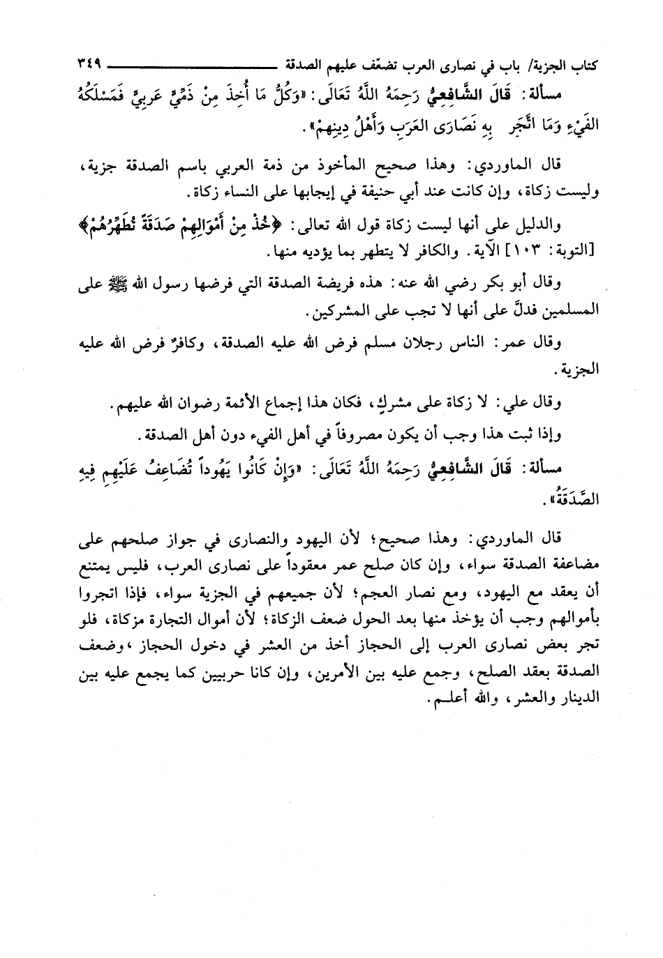 قال الشافعي رحمه الله تعالى: " وَكُلُّ مَا أُخِذَ مِنْ ذِمِّيٍّ عَرَبِيٍّ فَمَسْلَكُهُ الْفَيْءُ وَمَا اتَّجَرَ بِهِ نَصَارَى الْعَرَبِ وَأَهْلُ دينهم ".