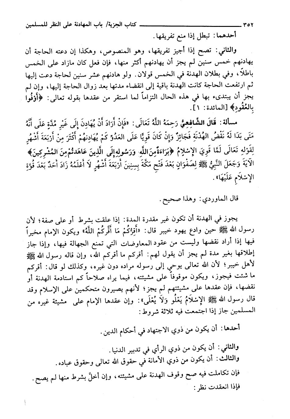 وَالثَّانِي: تَصِحُّ إِذَا أُجِيزَ تَفْرِيقُهَا، وَهُوَ الْمَنْصُوصُ، وَهَكَذَا إِنْ دَعَتْهُ الْحَاجَةُ أَنْ يُهَادِنَهُمْ خَمْسَ سِنِينَ لَمْ يَجُزْ أَنْ يُهَادِنَهُمْ أَكْثَرَ مِنْهَا، فَإِنْ فَعَلَ كَانَ مَا زَادَ عَلَى الْخَمْسِ بَاطِلًا، وَفِي بُطْلَانِ الْهُدْنَةِ فِي الْخَمْسِ قَوْلَانِ. وَلَوْ هَادَنَهُمْ عَشْرَ سِنِينَ لِحَاجَةٍ دَعَتْ إِلَيْهَا ثُمَّ ارْتَفَعَتِ الْحَاجَةُ كَانَتِ الْهُدْنَةُ بَاقِيَةً إِلَى انْقِضَاءِ مُدَّتِهَا بَعْدَ زَوَالِ الْحَاجَةِ إِلَيْهَا، وَإِنْ لَمْ يَجُزْ أن يبتدىء بِهَا فِي هَذِهِ الْحَالِ الْتِزَامًا لِمَا اسْتَقَرَّ مِنْ عَقْدِهَا بِقَوْلِهِ تَعَالَى: {أَوْفُوا بِالْعُقُودِ} [المائدة: 1]