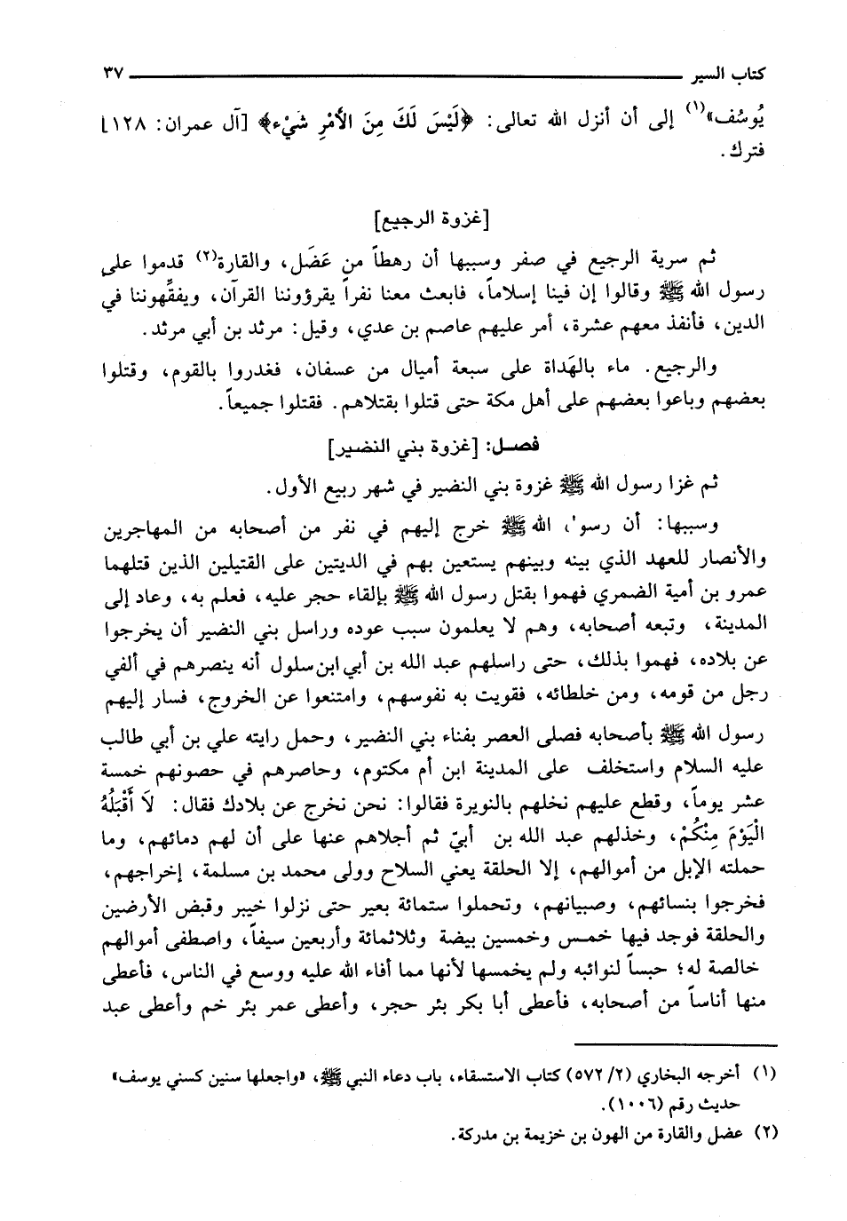 ثُمَّ غَزَا رَسُولُ اللَّهِ - صَلَّى اللَّهُ عَلَيْهِ وَسَلَّم َ - غَزْوَةَ بَنِي النَّضِيرِ فِي شَهْرِ رَبِيعٍ الْأَوَّلِ