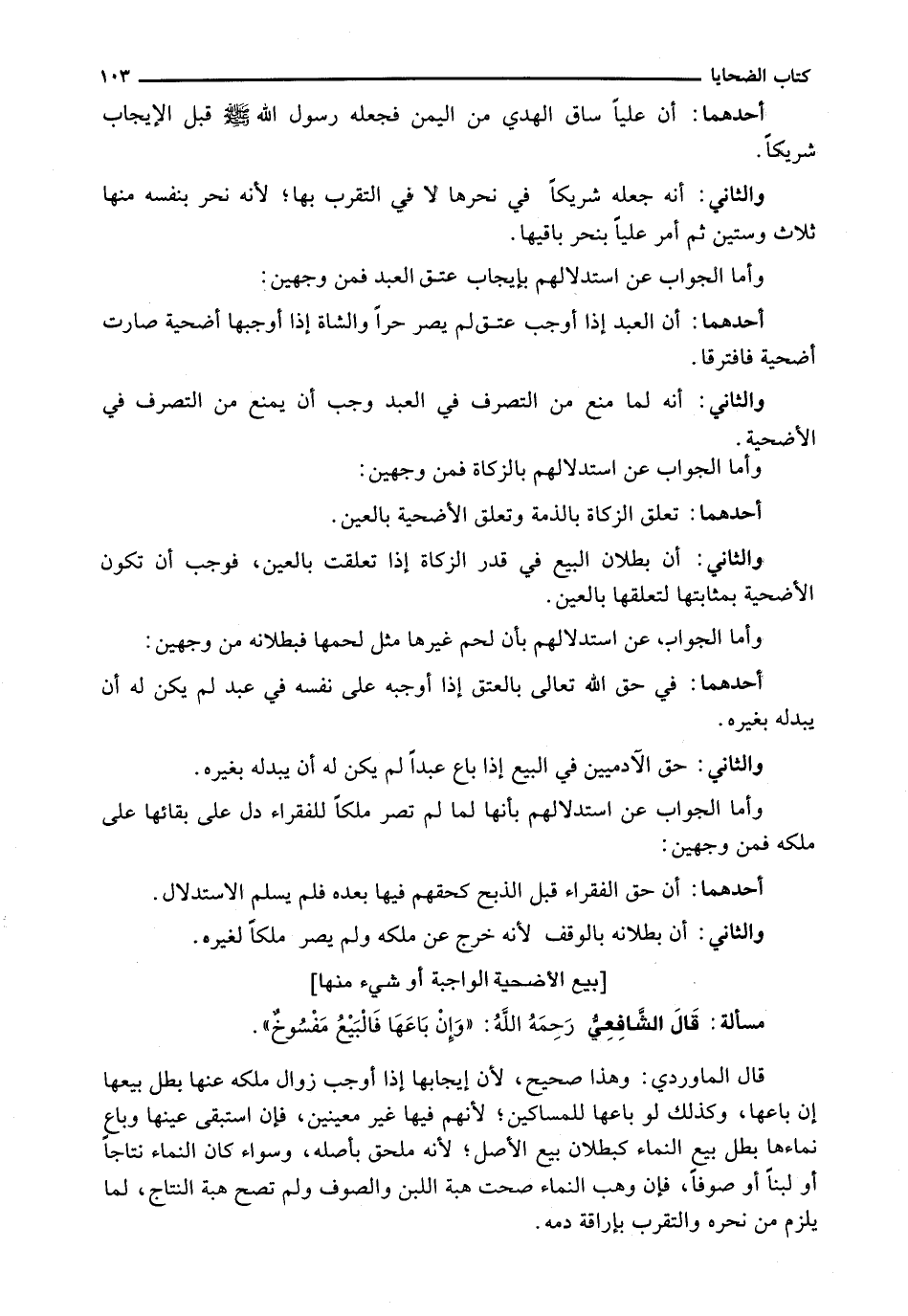 وَالثَّانِي: إِنَّهُ لَمَّا مَنَعَ مِنَ التَّصَرُّفِ فِي الْعَبْدِ وَجَبَ أَنْ يَمْنَعَ مِنَ التَّصَرُّفِ فِي الْأُضْحِيَّةِ.