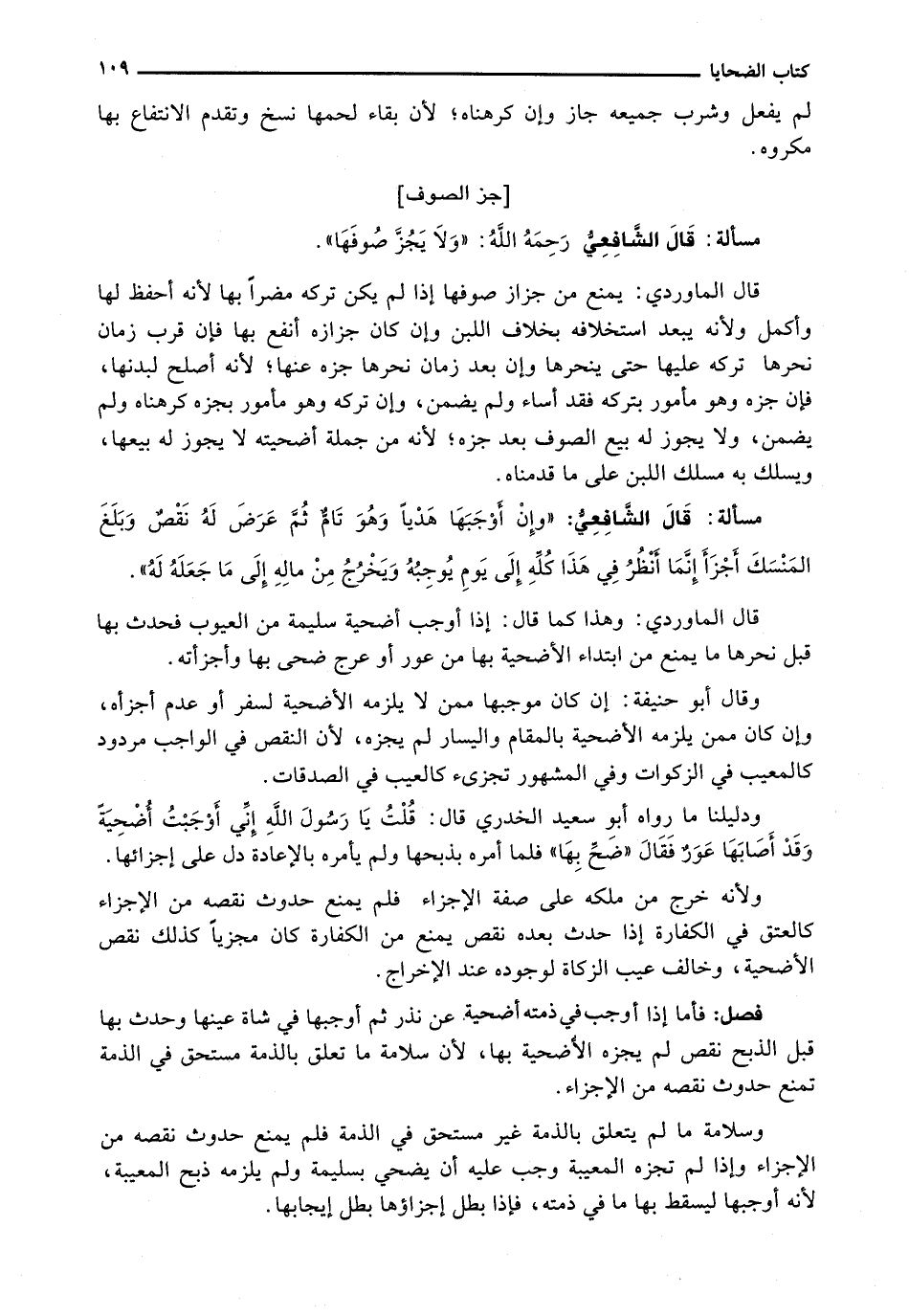 قَالَ الشَّافِعِيُّ رَحِمَهُ اللَّهُ: " وَلَا يَجُزُّ صُوفَهَا ".