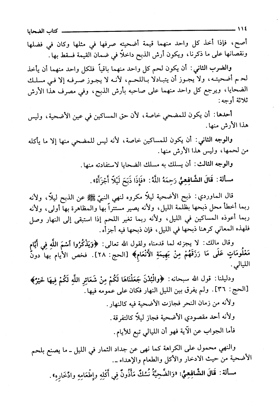 قَالَ الشَّافِعِيُّ رَحِمَهُ اللَّهُ: " فَإِذَا ذَبَحَ لَيْلًا أَجْزَأَهُ ".